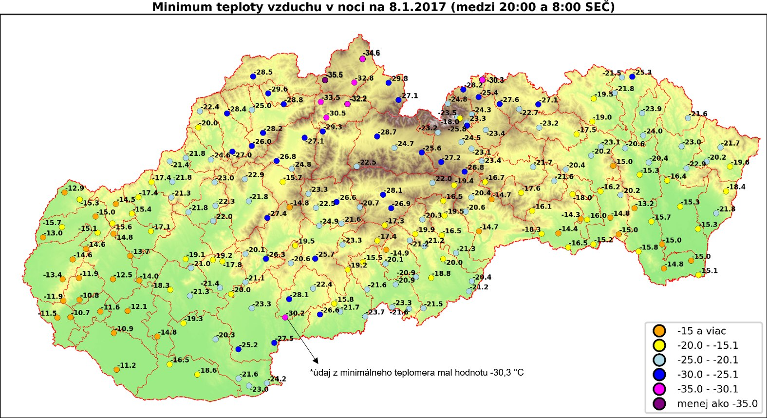 Najchladnejšie bolo vtedy na Orave, kde teplota klesla aj pod -30 °C. V Oravskej Lesnej, v zastavanom území, namerali až -35,5 °C. Ide o hodnotu v TOP 10 najnižších teplôt v histórii meraní na území Slovenska.