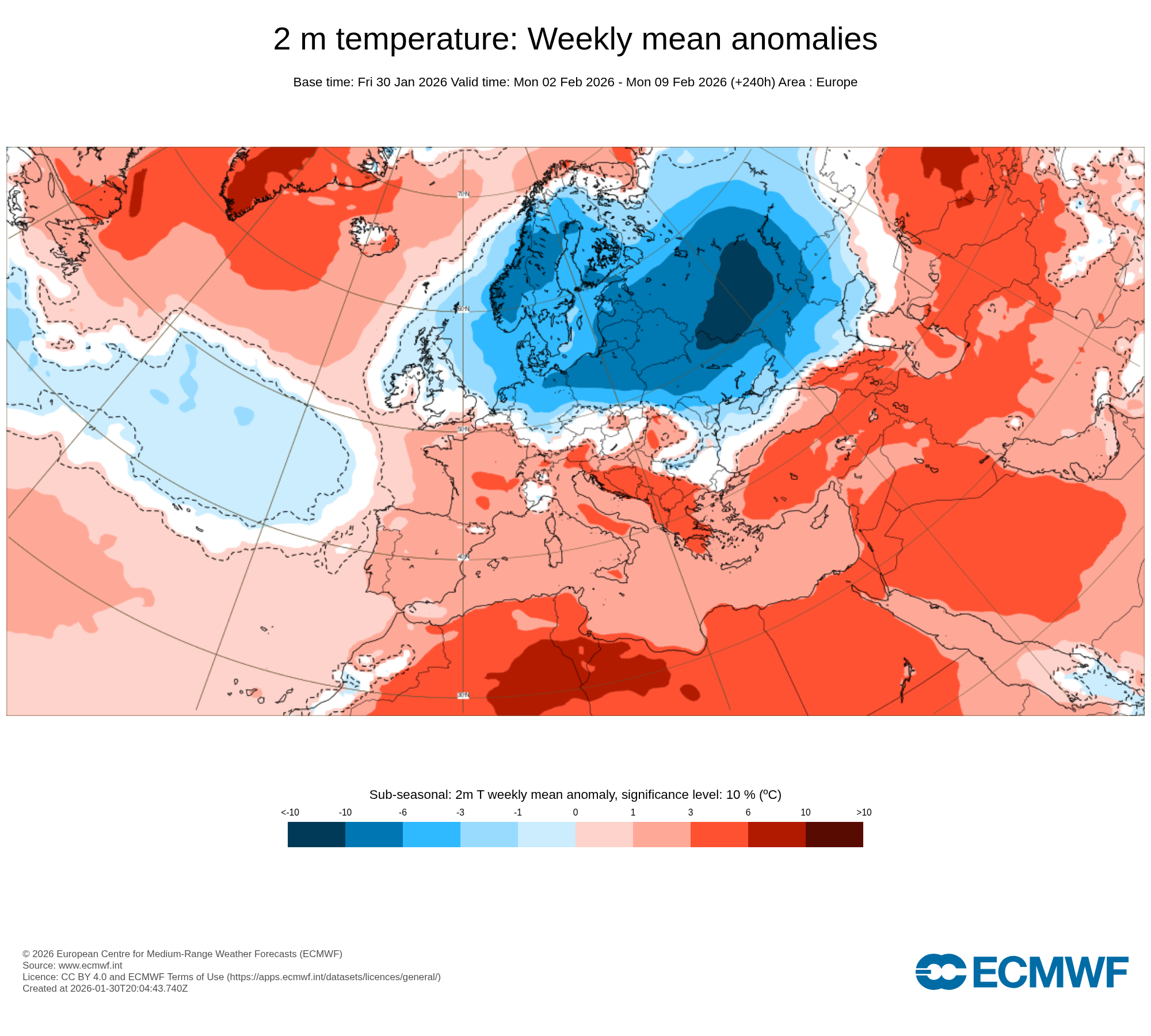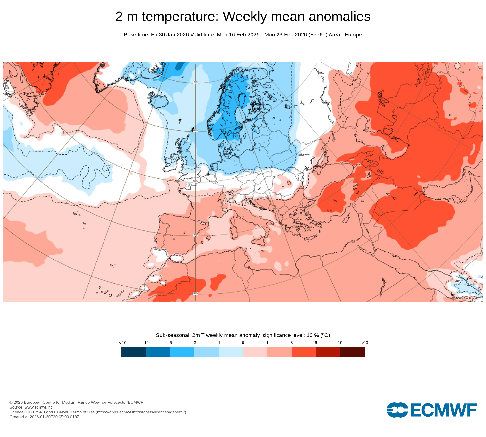 V severnej a vo východnej Európe sa bude priemerná teplota pohybovať o 5 až 10 °C nižšie, než je pre toto ročné obdobie bežné. Na našom území sa naopak očakáva teplejšie počasie, ako je na začiatok februára obvyklé.