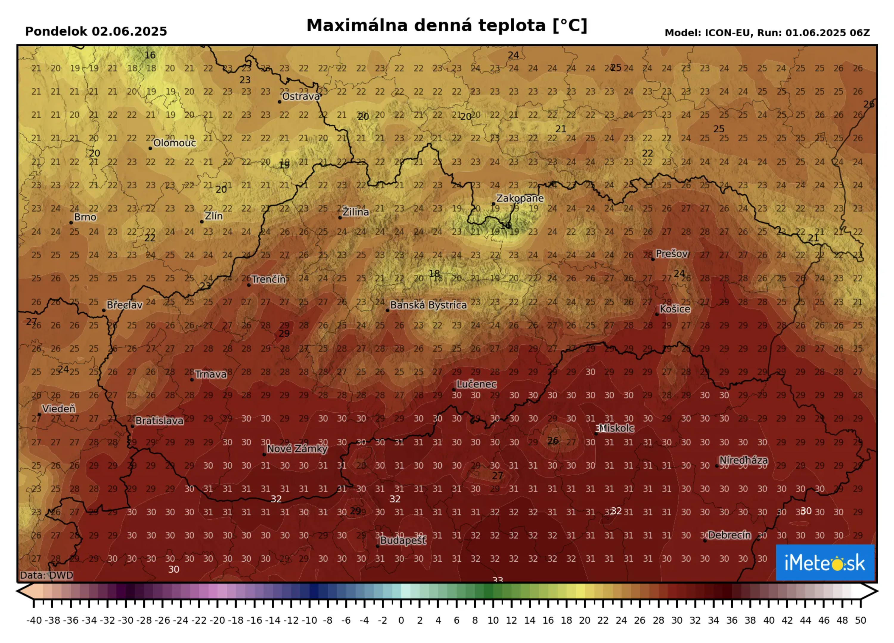 Prvý jún prináša vplyvom juhozápadného prúdenia teplého vzduchu zo západnej Afriky poriadne letné horúčavy sprevádzané silnými búrkami najmä na východe nášho územia.