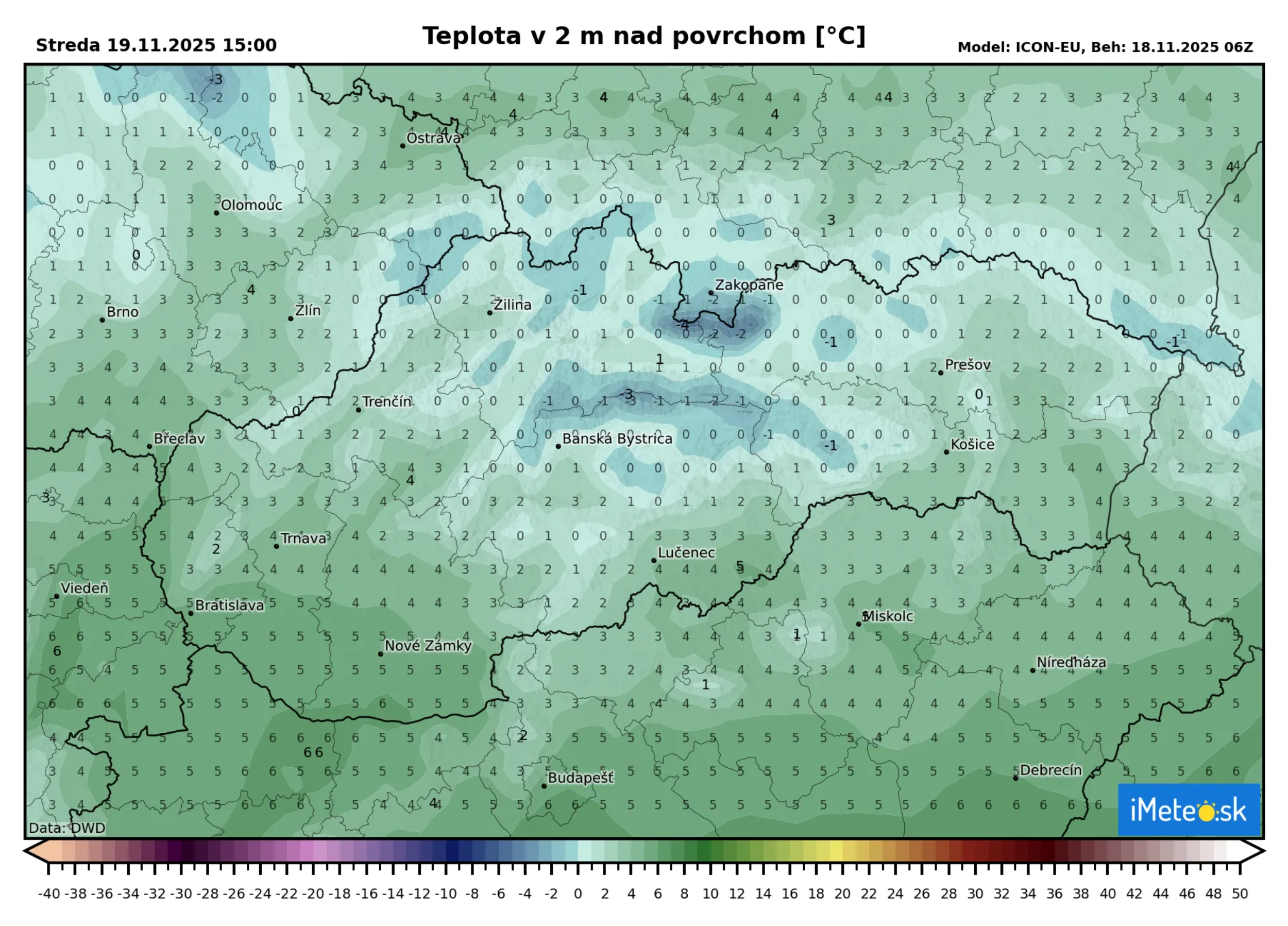 Po mrazivej noci zajtrajšie maximá vysoko nevystúpia. Najteplejšie bude na juhu Slovenska s teplotami do +6 °C, no na severe a strednom Slovensku teploty vystúpia len do +2 °C a v niektorých dolinách sa bude vyskytovať aj celodenný mráz.