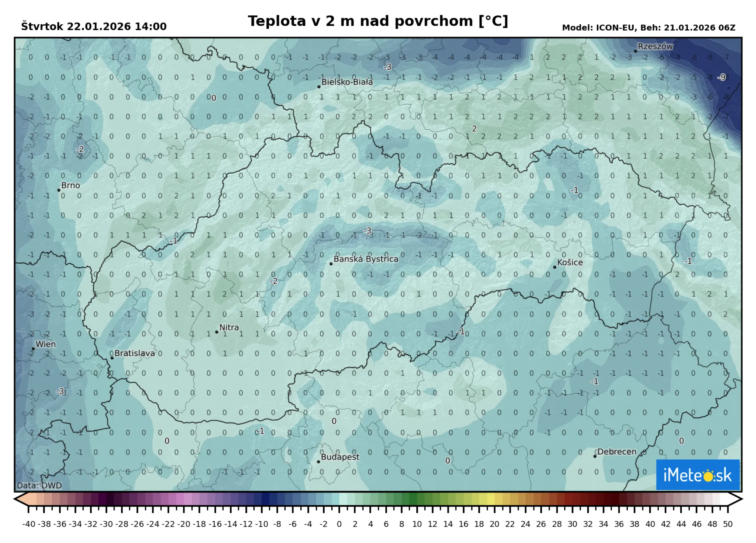 Zajtra bude podobne ako dnes, čo sa teplôt týka. Najvyššia denná teplota -1 až +2 °C, pričom v nižších polohách bude aj chladnejšie. Bude už však aj oblačno alebo polooblačno a o niečo menej oblakov bude na severe.