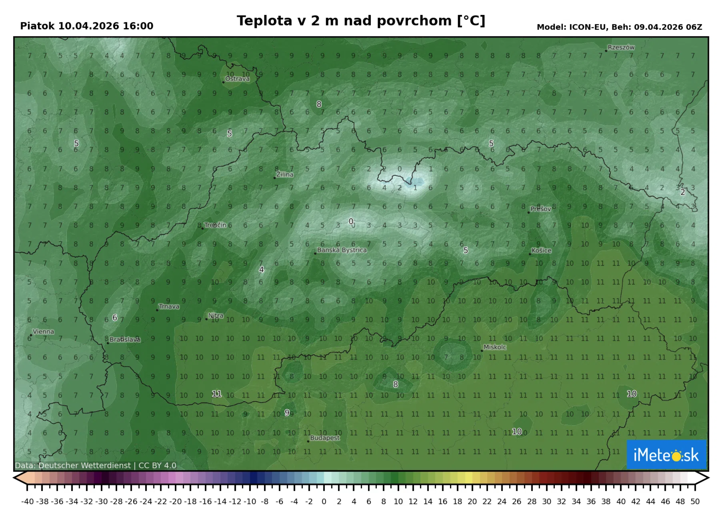 | Košice | Polooblačno | +10 °C |