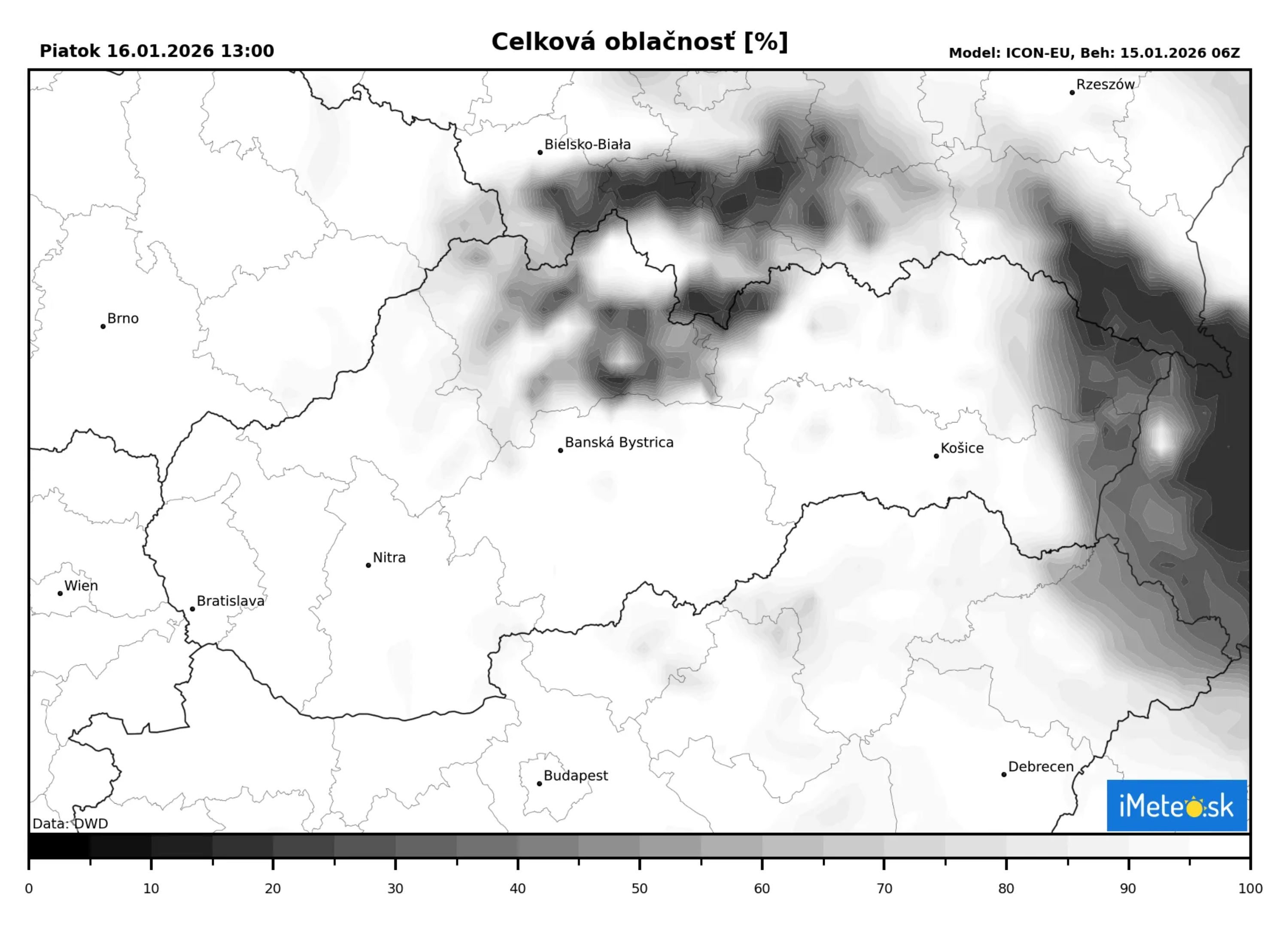 Vo vysokých polohách najmä na strednom a východnom Slovensku (tam postupne aj v stredných a nižších polohách) očakávame zmenšenú oblačnosť.