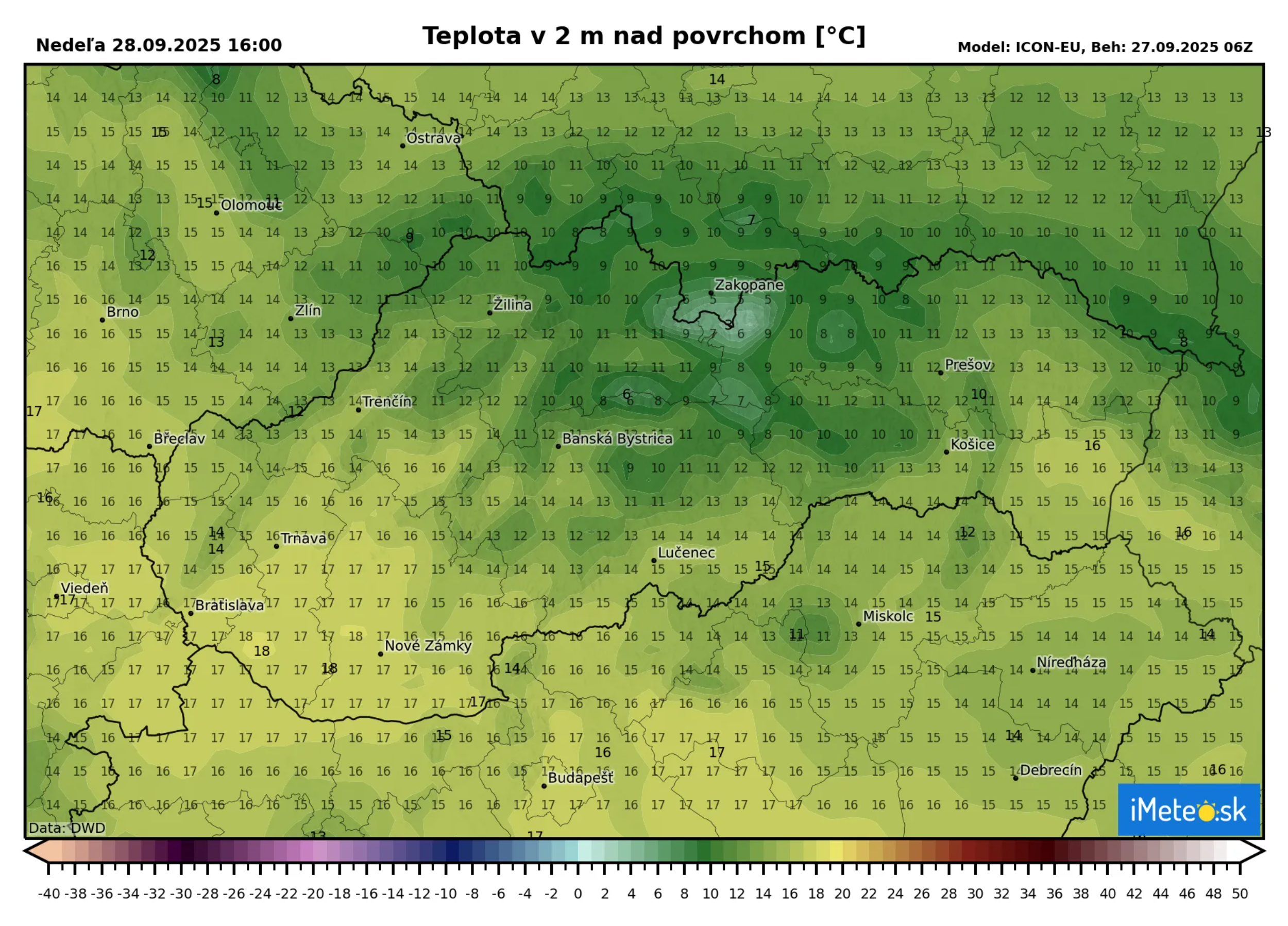 Čo sa týka teplôt, tie budú podobné ako dnes, pričom zajtra môže byť ešte o nejaký ten jeden stupeň teplejšie ako dnes. Teploty sa budú šplhať k +20 °C, ojedinele aj nad +20 °C. Najteplejšie bude na juhozápade Slovenska, na východe bude zajtra o niečo chladnejšie.