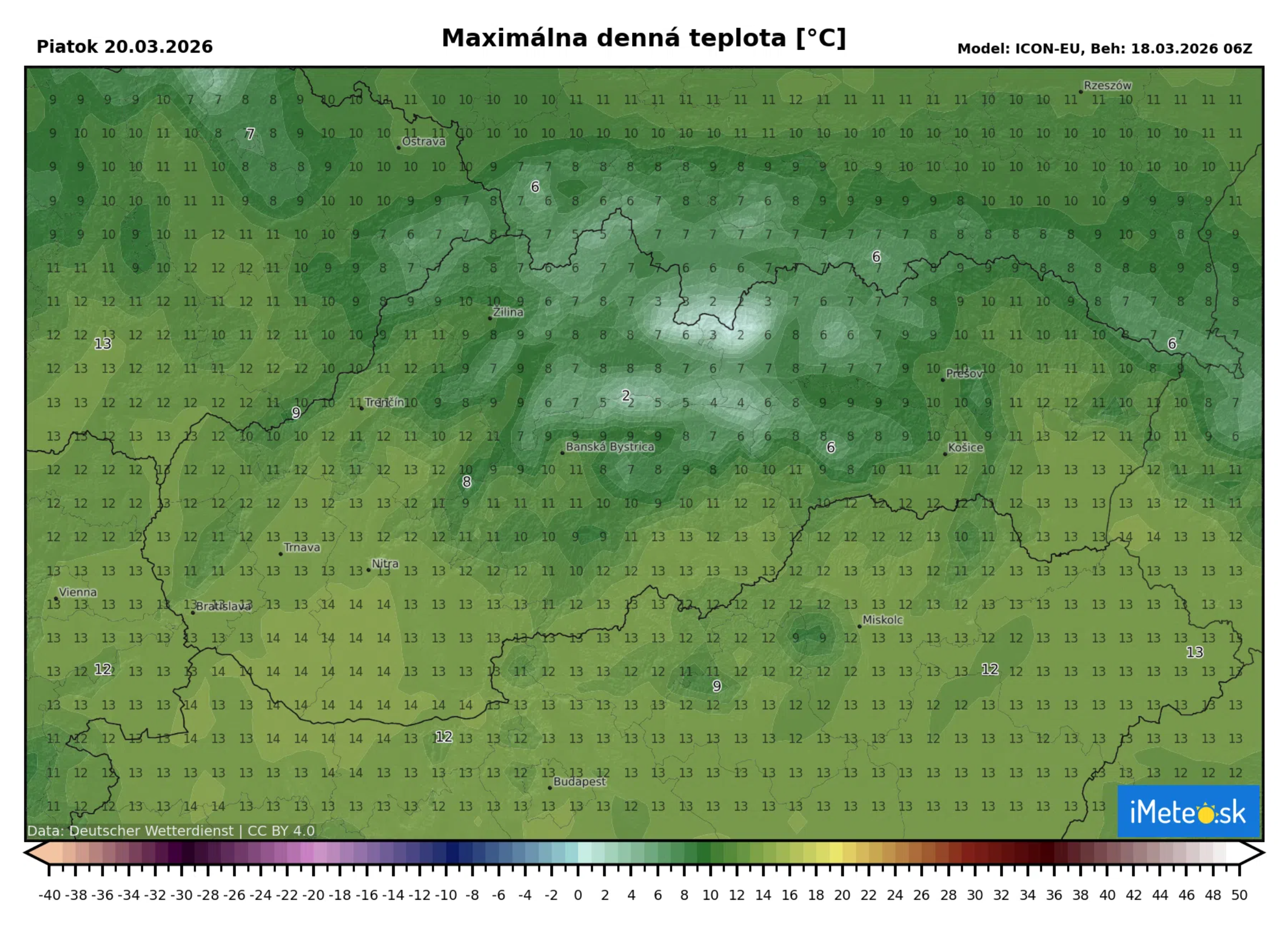 Najvyššia denná teplota vystúpi k +11 °C až +16 °C, na Kysuciach, Orave, Liptove a Hornom Spiši okolo +9 °C. Teplota na horách vo výške 1 500 m n. m. bude okolo 0 °C.
