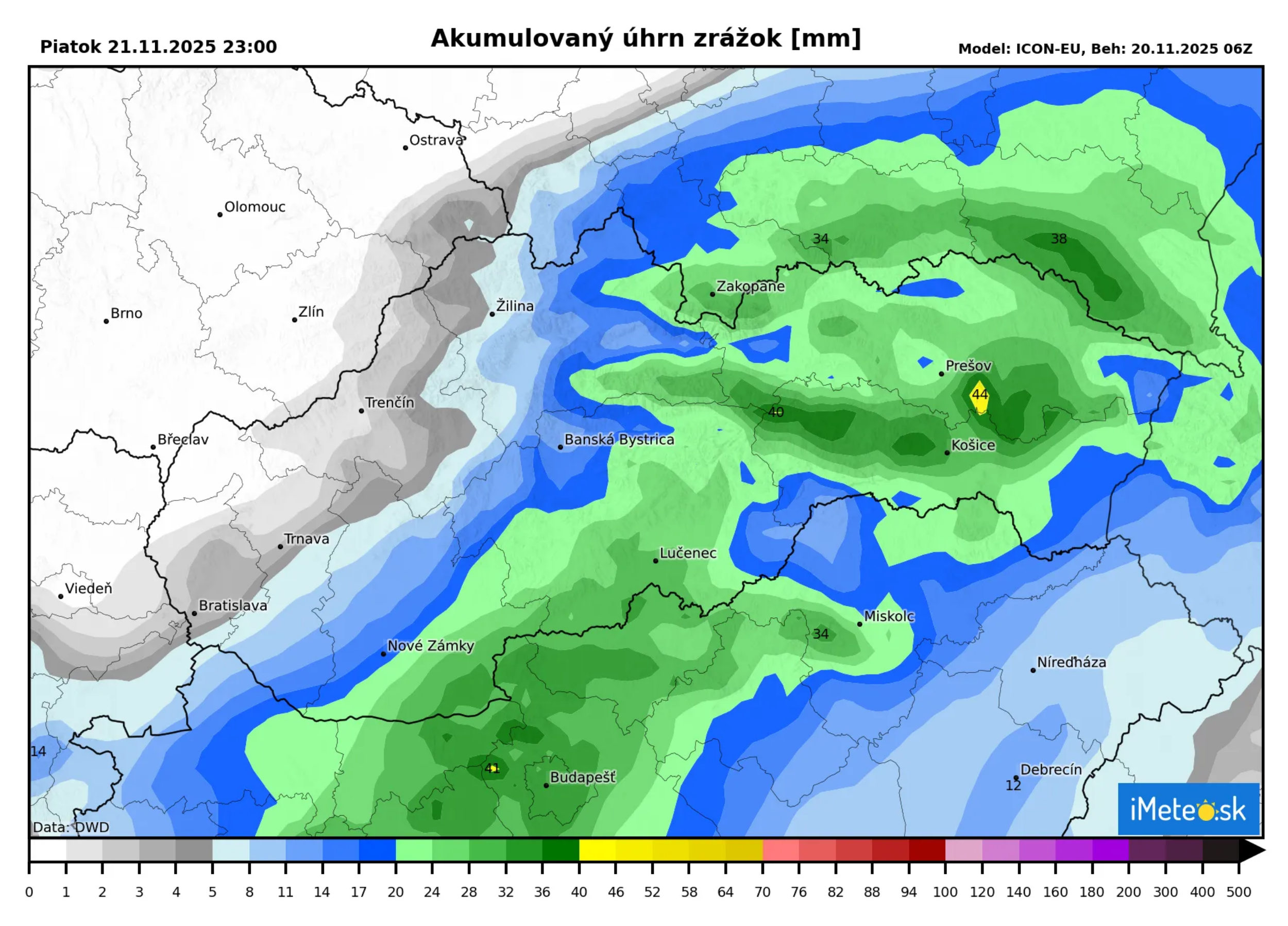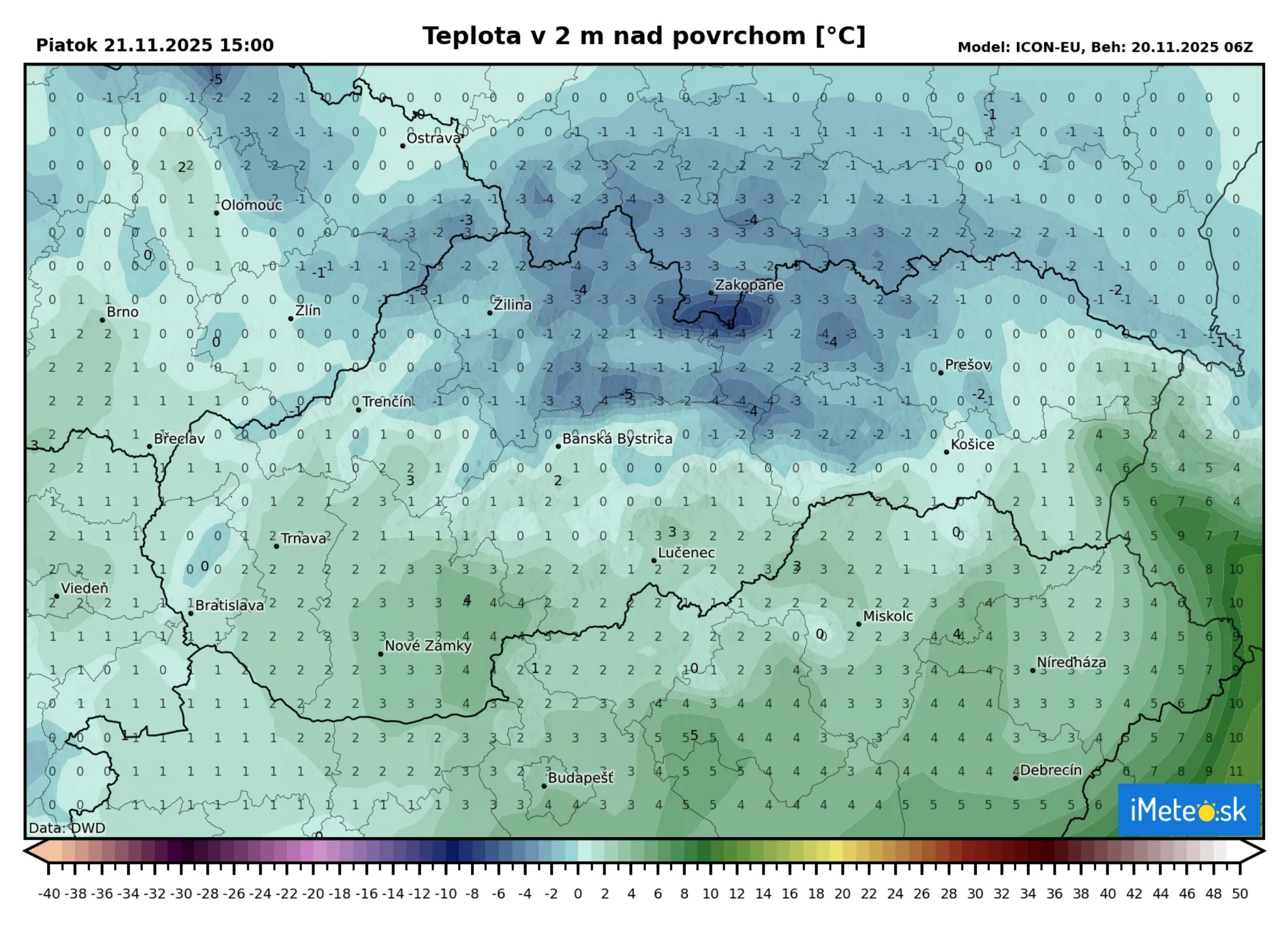 Do piatkového večera by malo najviac snežiť v oblasti Tatier, Spiša a Gemera, kde spadne 25 až 35 mm zrážok vo forme snehu, čo spolu s topením predstavuje 20 až 30 cm snehovú pokrývku.