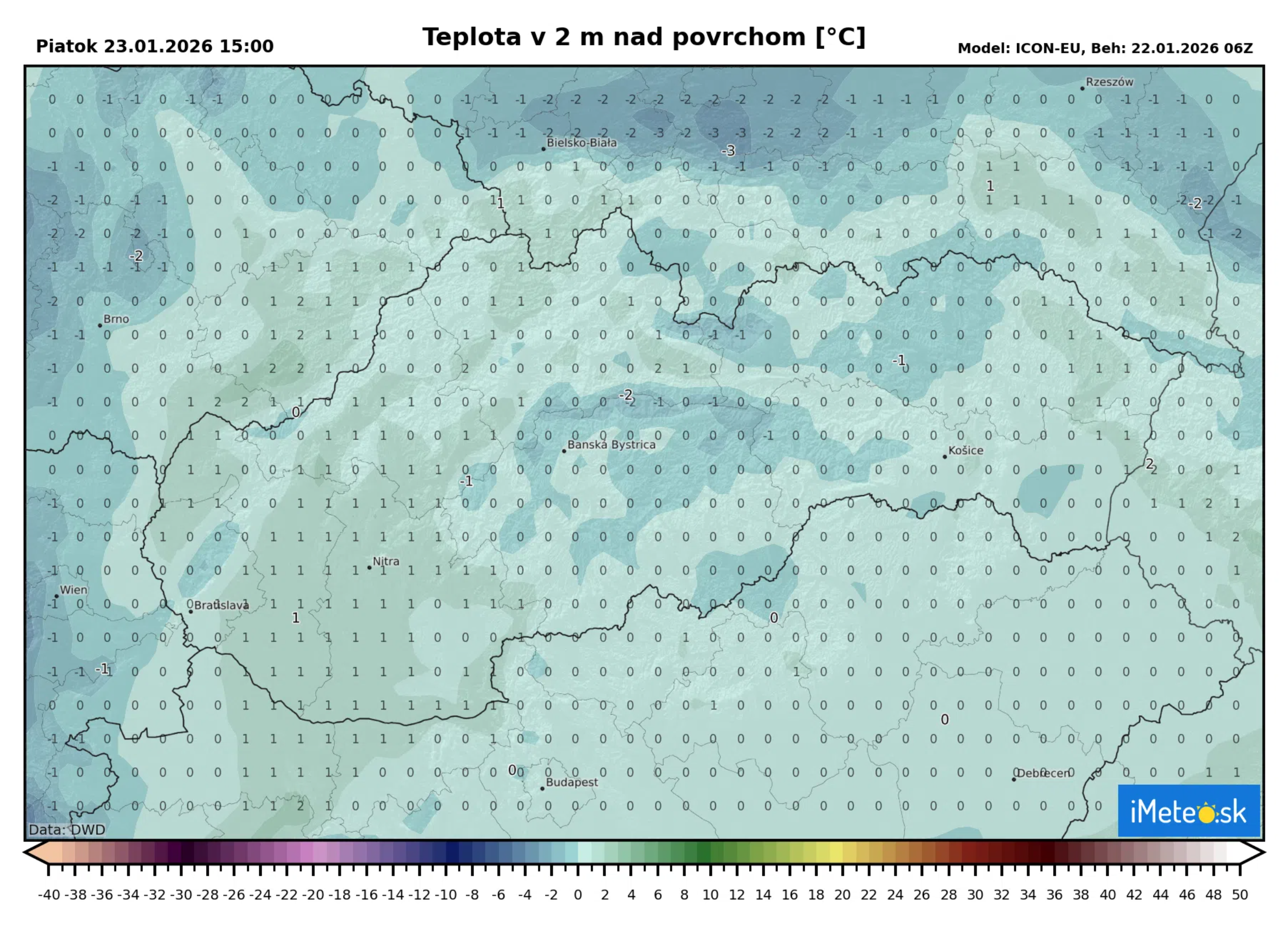 | Košice | Prehánky | 0 °C |