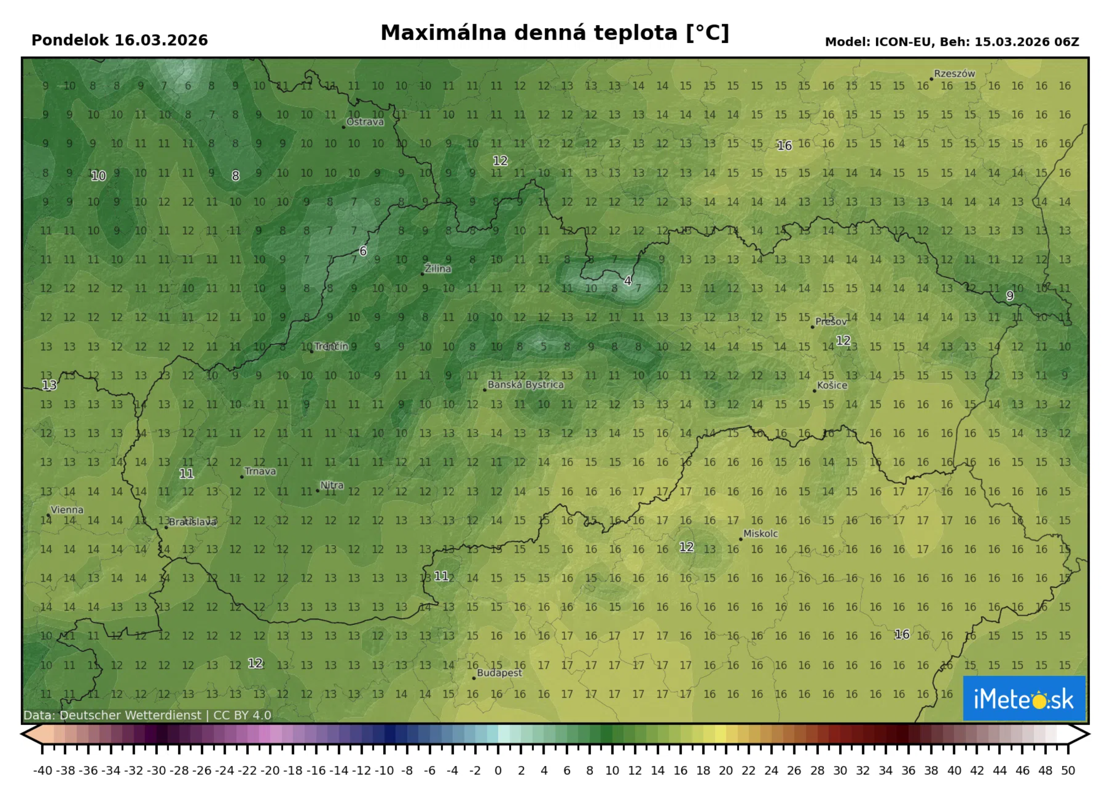 Maximá sa teda budú pohybovať od +8 °C na severe po +16 °C na juhovýchode Slovenska. Vo výške okolo 1500 metrov bude cez deň stále pomerne teplo a to okolo +3 °C, do večera sa tam ale ochladí až na -1 °C. Zrážky preto na horách vo večerných hodinách budú snehové.