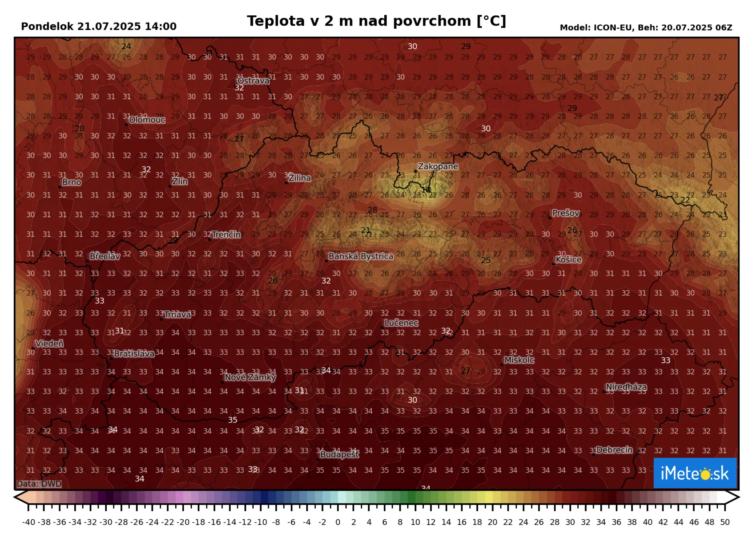 V Bratislave vystúpia zajtra teploty na +35 °C a v Košiciach bude o niečo chladnejšie s teplotami do +32 °C.