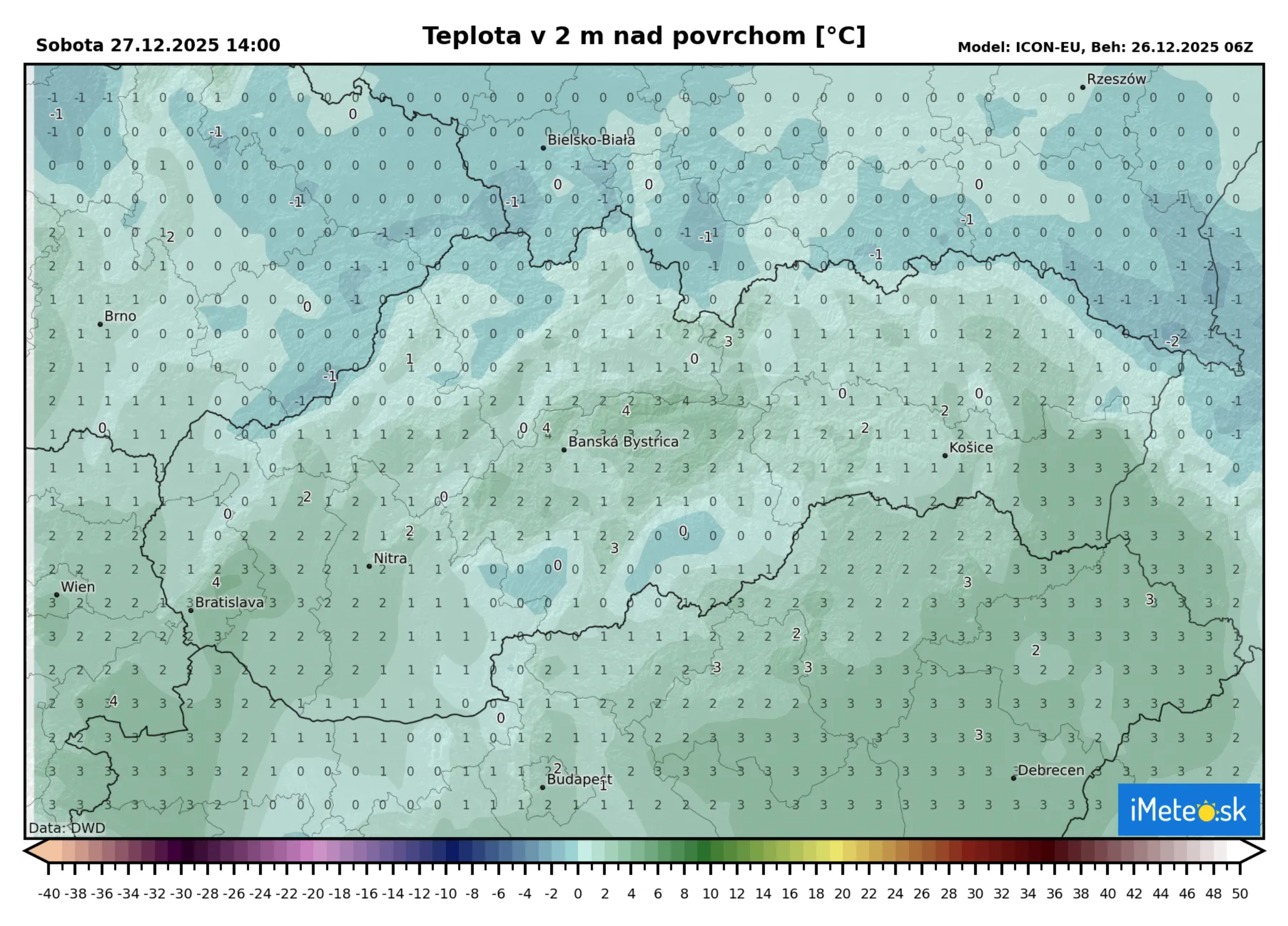 Maximálne denné teploty sa budú pohybovať od 0 °C na severe a severovýchode Slovenska až po teploty okolo +4 °C na juhozápade a juhovýchode, lokálne aj inde pri jasnej oblohe.