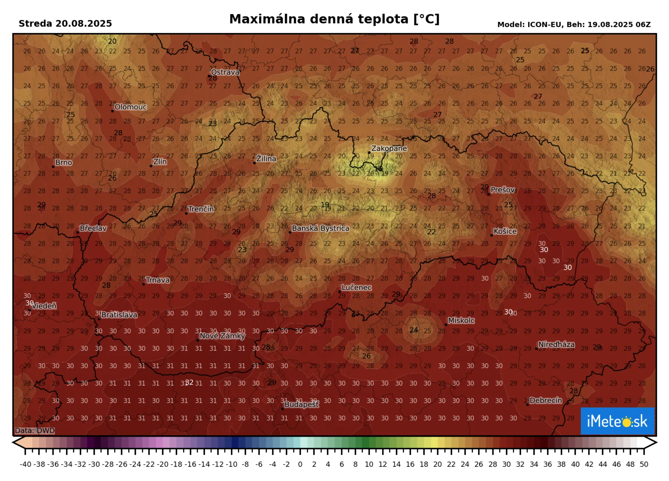 Na juhu západného a východného Slovenska rátajte s teplotami od +30 do +31 °C, lokálne aj vyššie. Na ostatnom území budú maximá dosahovať od +25 °C do +29 °C. Čaká nás teda posledný tropický a aj letný deň. Prepad teplôt bude výrazný.