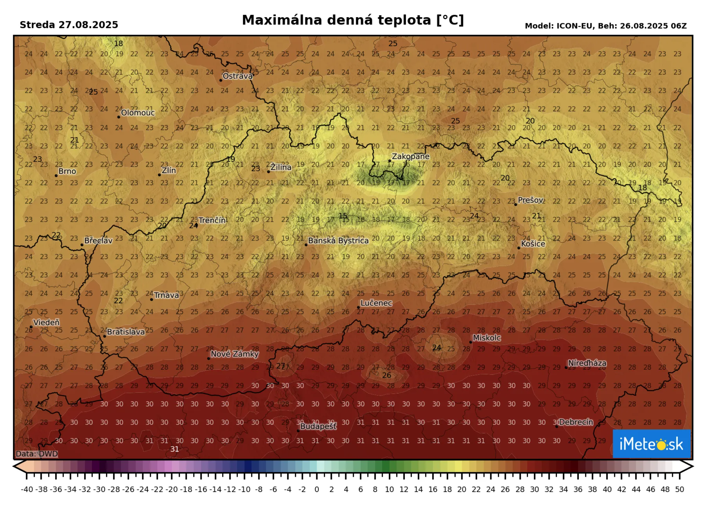 Od juhozápadu k nám už dnes prúdil teplý vzduch a v tomto trende budeme pokračovať aj zajtra. Kým dnes sa teploty pohybovali od +20 °C do +26 °C, už zajtra poskočia o pár stupňov viac.