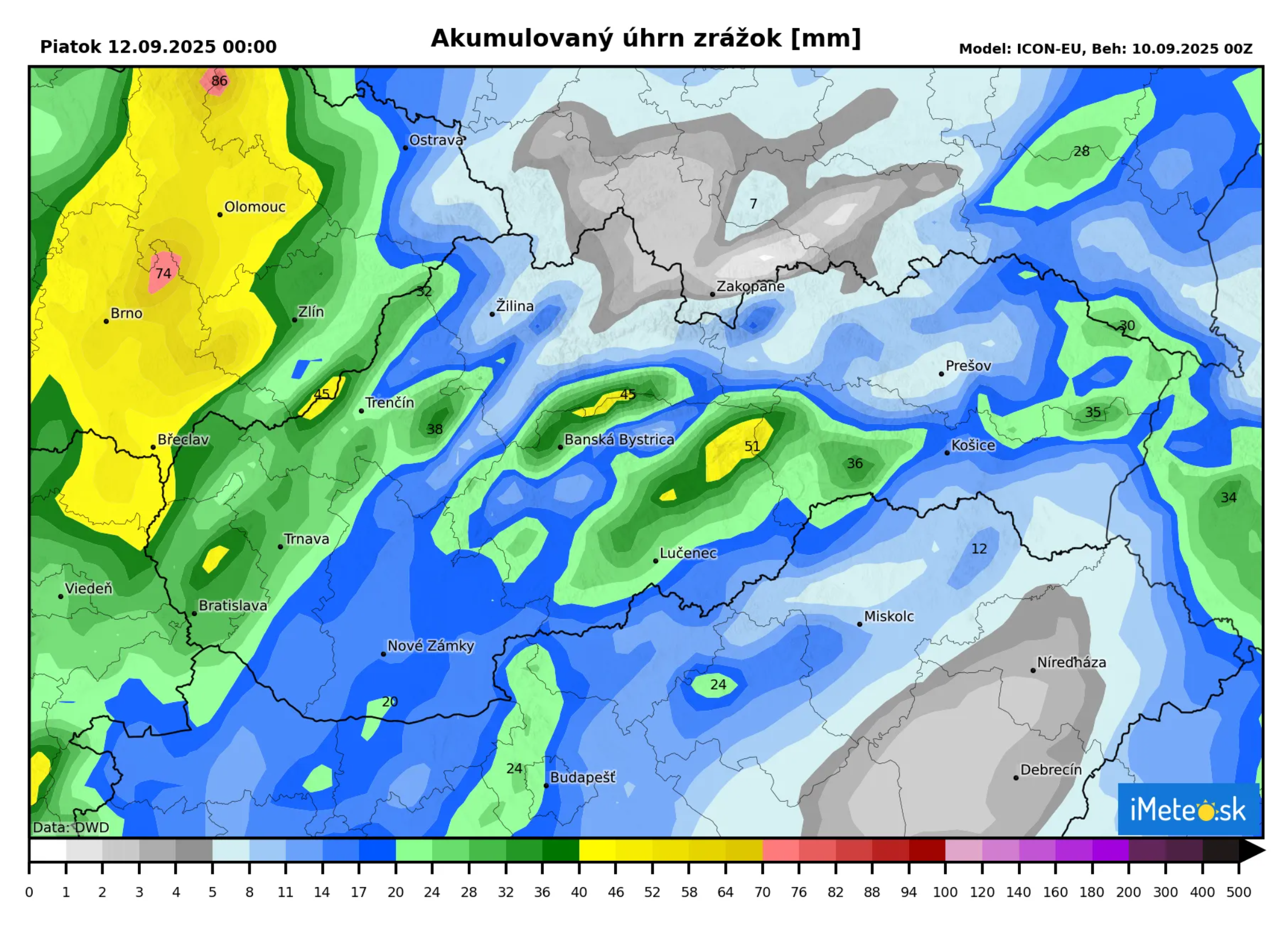 Hlavná vlna výdatných zrážok síce dorazí na naše územie už o pár desiatok minút a výdatne naprší hlavne počas noci, zrážky ale budú zajtra dopoludnia ustávať na východe Slovenska. Hlavne na severovýchode ešte naprší lokálne aj do 30 mm zrážok.
