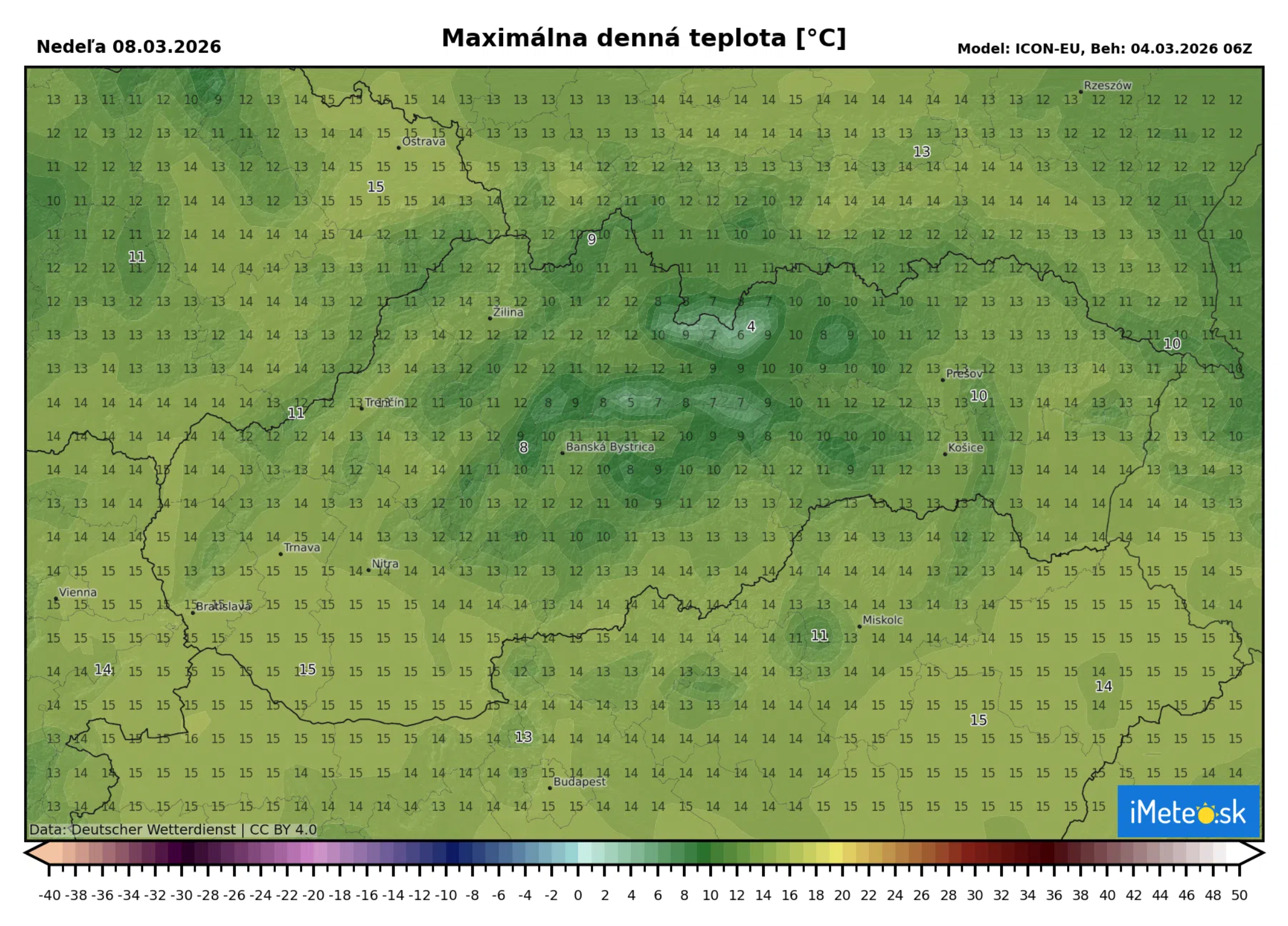 Maximálne denné teploty budú podobné ako dnes, teda na severe Slovenska od +8 do +10 °C, na ostatnom území až do +16 °C. Na horách vo výške 1 500 metrov očakávajte okolo +2 °C.