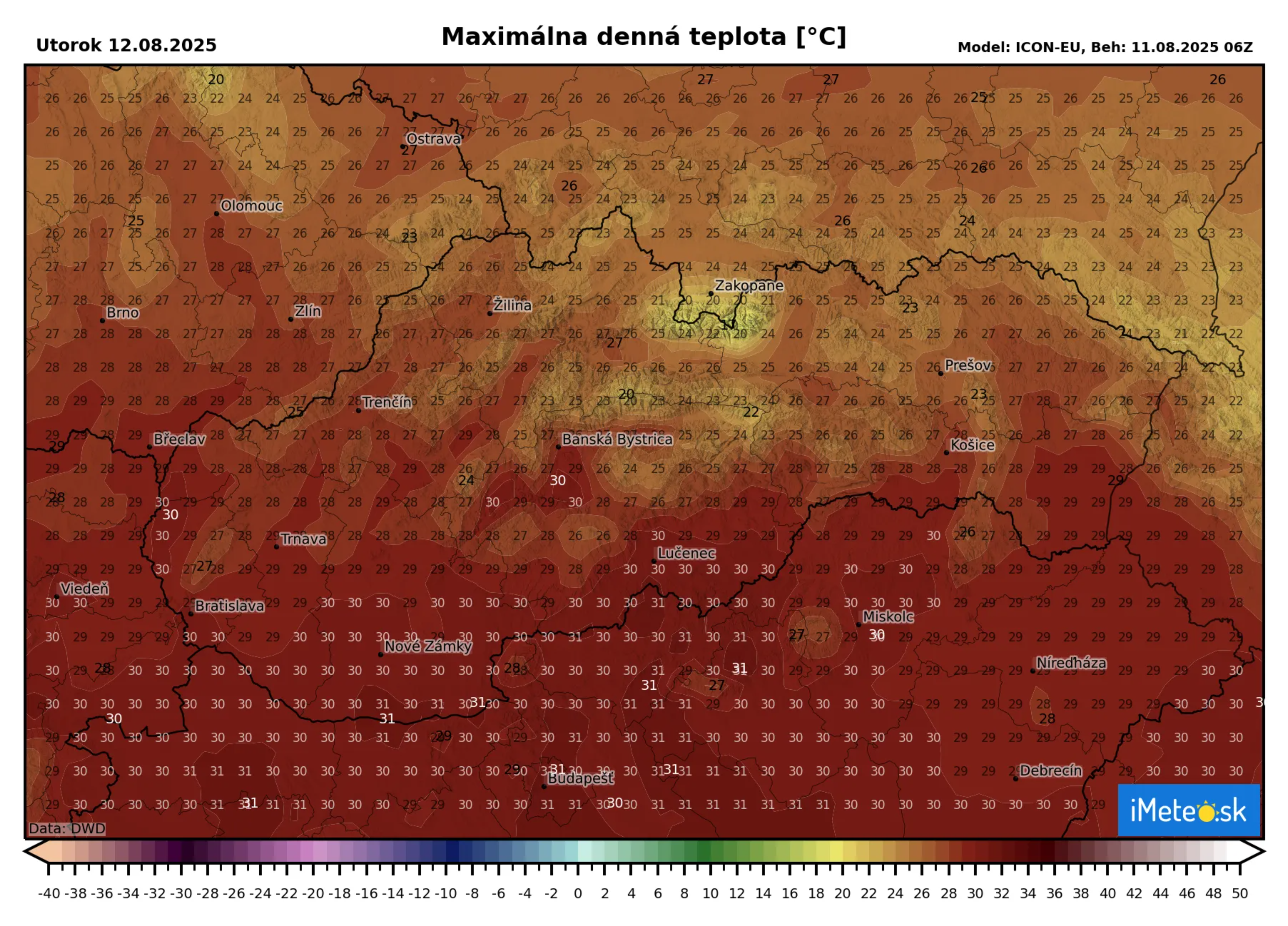 Počas dňa nás čaká prevažne jasné a slnečné počasie bez oblakov či zrážok. Teplota vzduchu vystúpi na príjemných +27 až +32 °C, čo vytvorí ideálne podmienky na letné aktivity, turistiku alebo relax vonku. V Bratislave teplota vystúpi na +30 °C a v Košiciach to bude o niečo menej a to +26 °C.