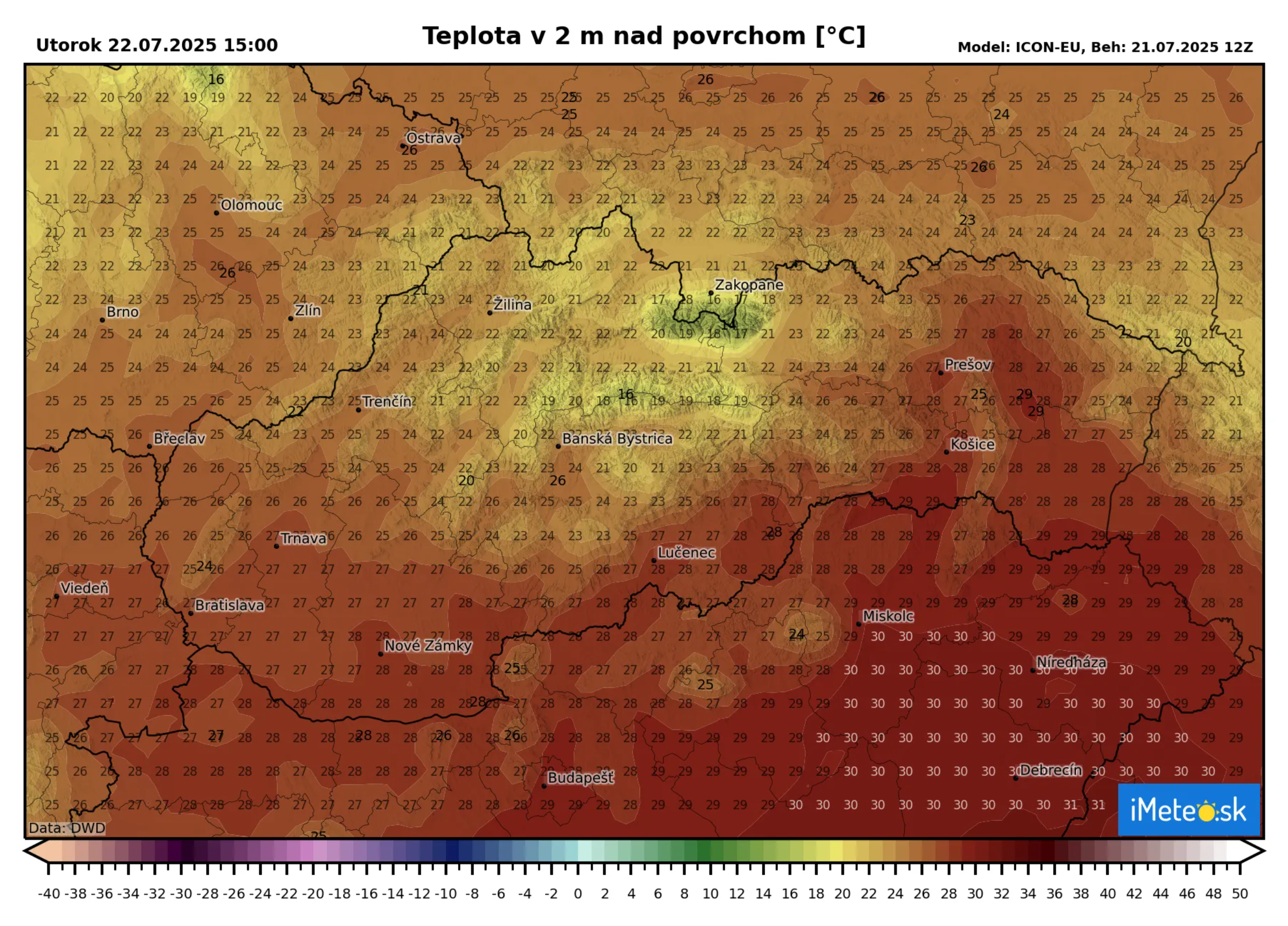 Napríklad v Bratislave a aj Košiciach sa očakávajú teploty okolo +28 °C, zatiaľ čo v Žiline bude menej ako +25 °C, čiže teploty letnú hranicu na severe ani nedosiahnu.