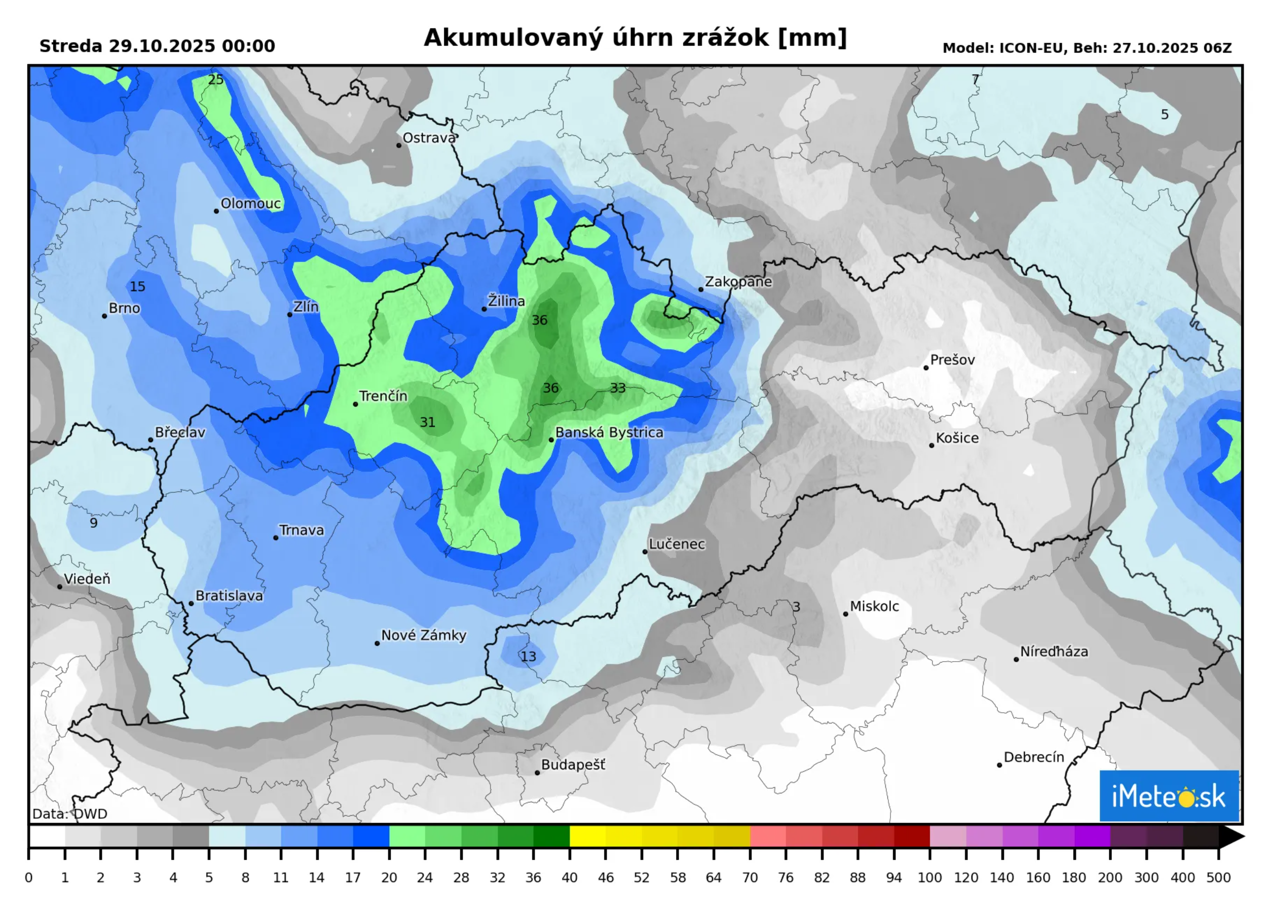 Utorkové úhrny sa budú pohybovať do 35 mm, a to najmä na severozápadnom a strednom Slovensku. Najmenej zrážok, resp. aj žiadne zrážky budú na východe Slovenska.