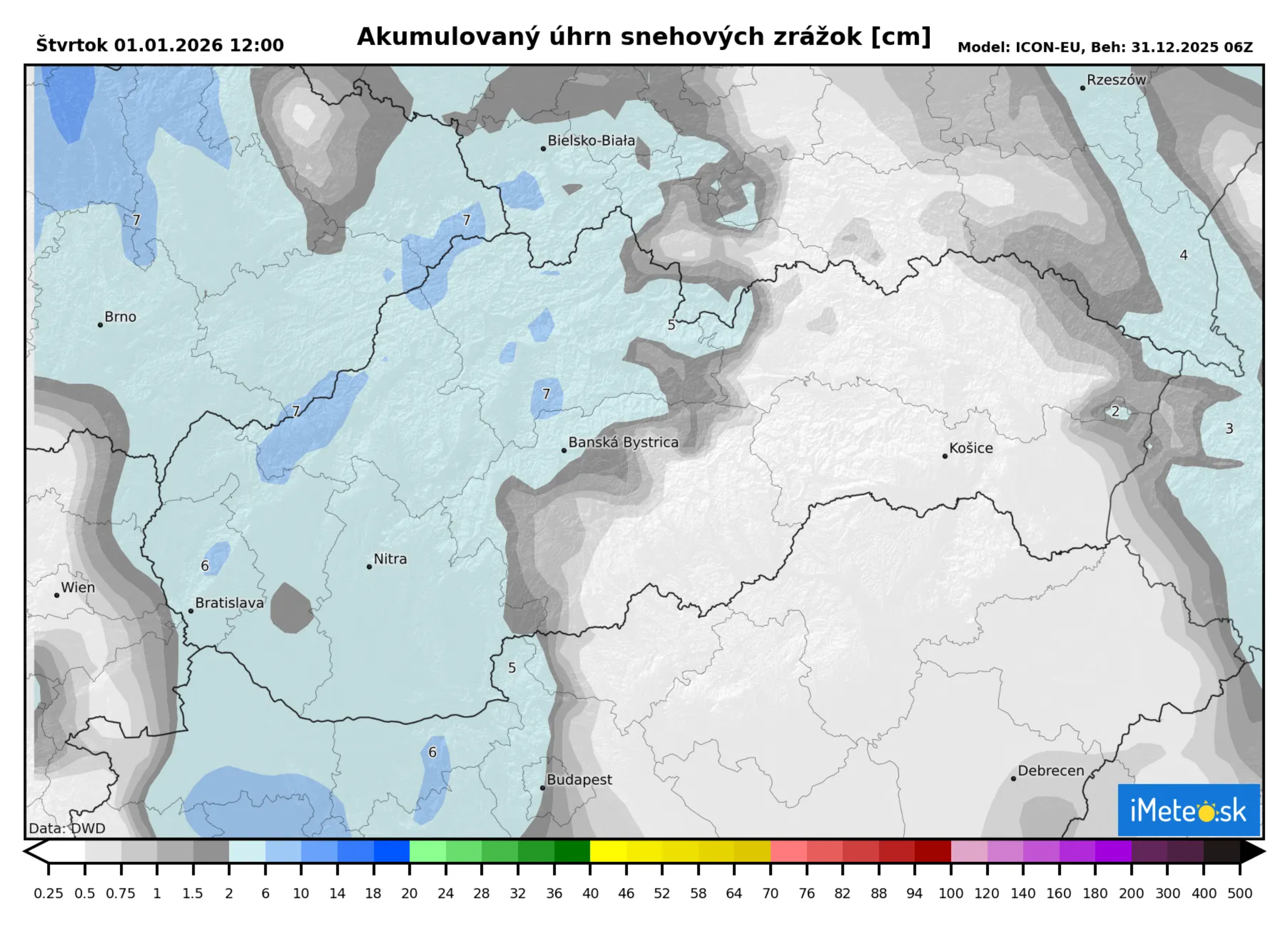 Snežiť však onedlho začne aj od západu, kde do rána prinesie vlna sneženia pokrývku nielen na severozápad, ale aj do nížin na juhozápade. Odtiaľ neskôr postúpi aj na stredné Slovensko.