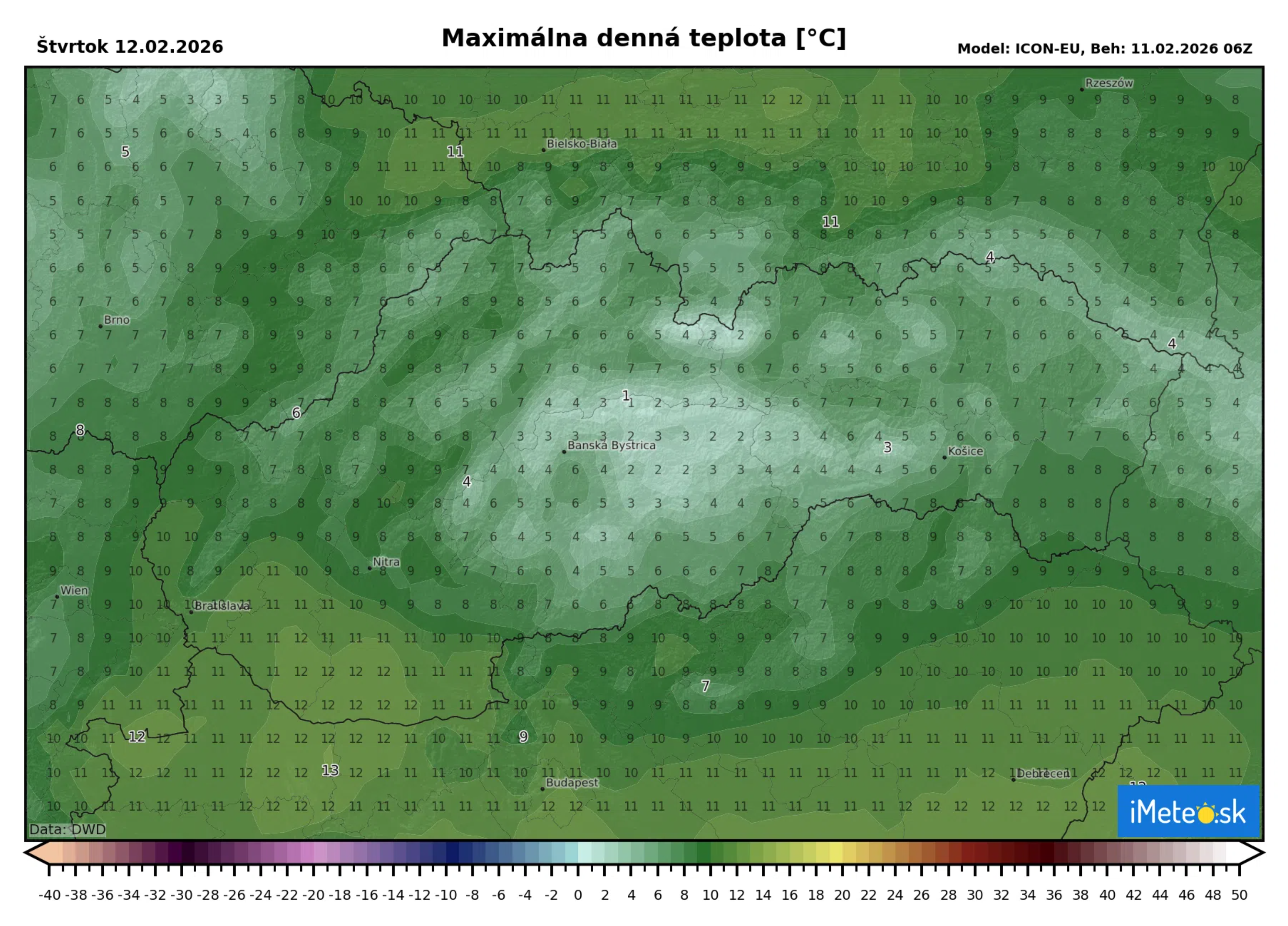 Denné teploty vystúpia na +3 až +8 °C, na západe a lokálne aj inde môže byť +9 až +14 °C. Vo výške 1 500 m n. m. sa teplota bude pohybovať okolo +1 °C. Vietor bude juhovýchodný až južný s rýchlosťou 3 až 9 m/s, v Banskobystrickom kraji slabý premenlivý.