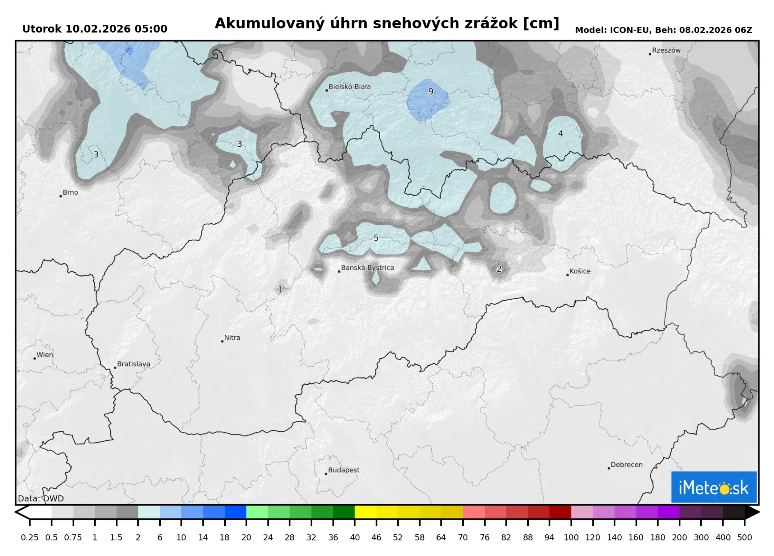 Zrážky sa však vplyvom studeného frontu, ktorý do našej oblasti postupuje od severu, začínajú pomaly meniť na sneženie, ktoré bude určovať charakter počasia aj počas nasledujúcich hodín.