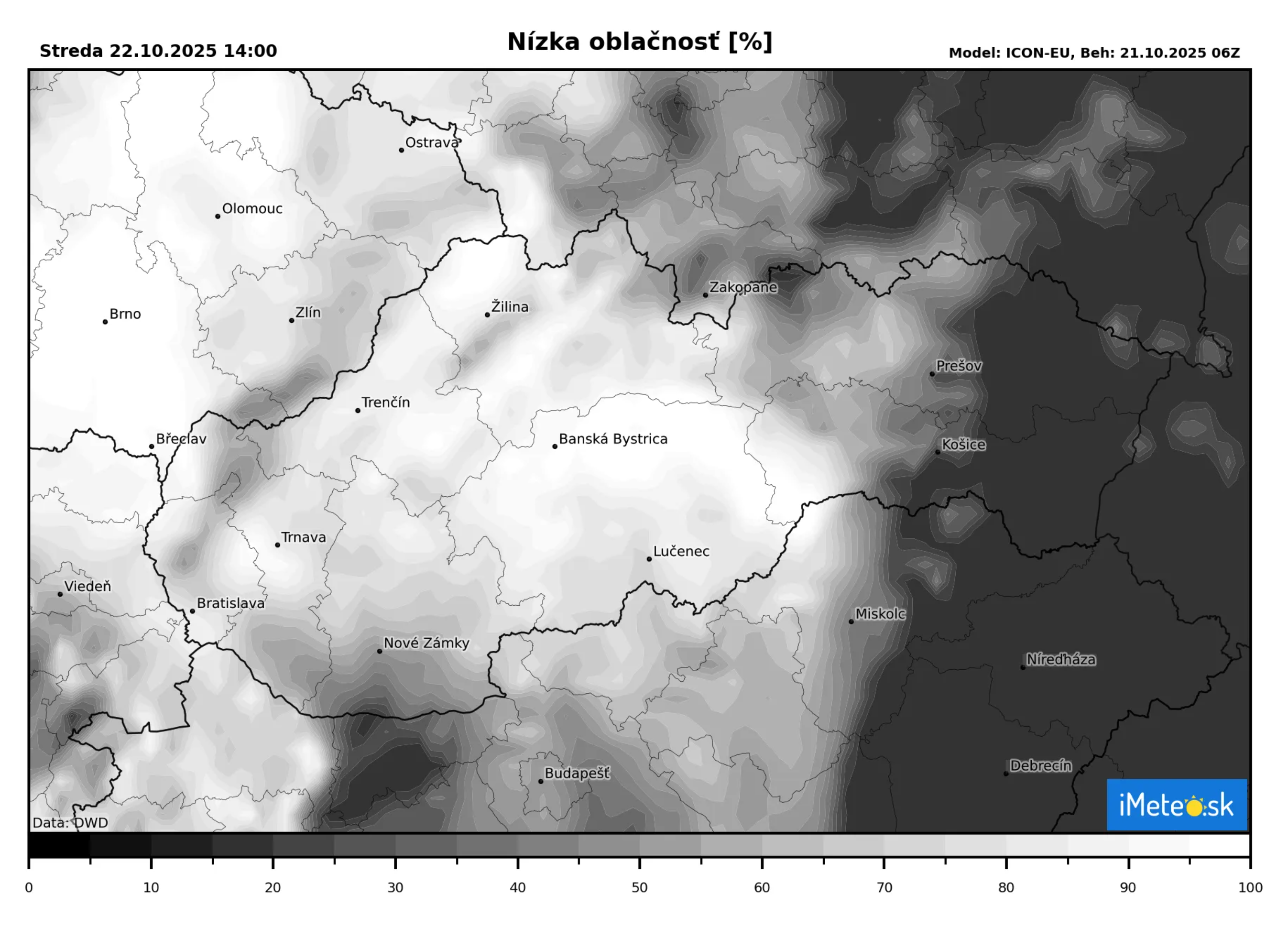 Ranné hmly v stredu neočakávame, naďalej však bude oblačno až zamračené. Len ojedinele sa môže objaviť prechodne zmenšená oblačnosť, a to najmä na východe Slovenska. Miestami očakávame dážď alebo mrholenie s úhrnmi do 5 mm, na hrebeňoch Tatier môže snežiť.