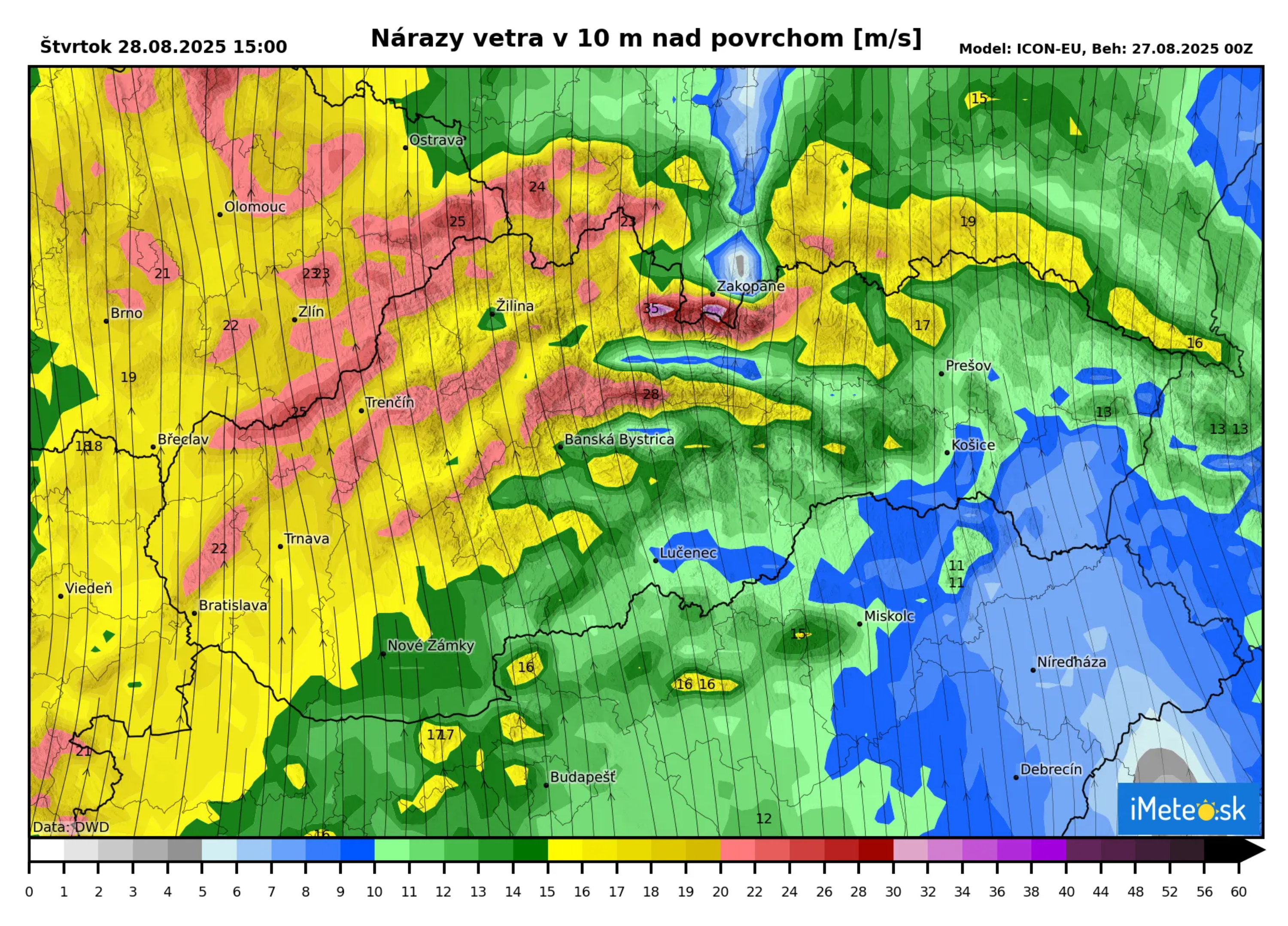 Vráťme sa však ku štvrtku – očakávame jasno až polojasno, len ojedinele prechodne zväčšenú oblačnosť. Potrápi nás však vietor, ktorý bude miestami poriadne silný.