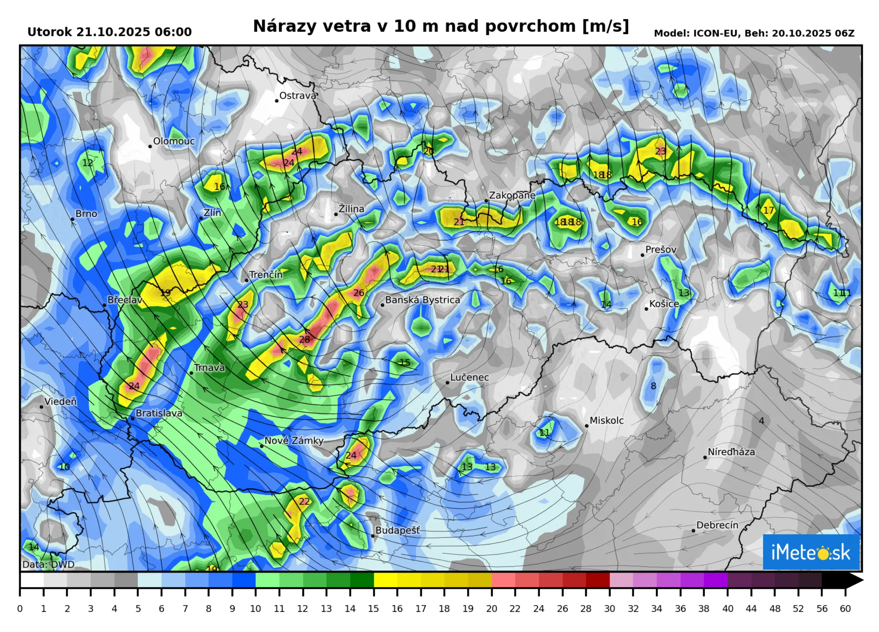 Očakáva sa tu lokálne vietor, ktorý môže dosiahnuť v nárazoch rýchlosť 65 až 75 kilometrov za hodinu (km/h), v priemere 45 km/h.