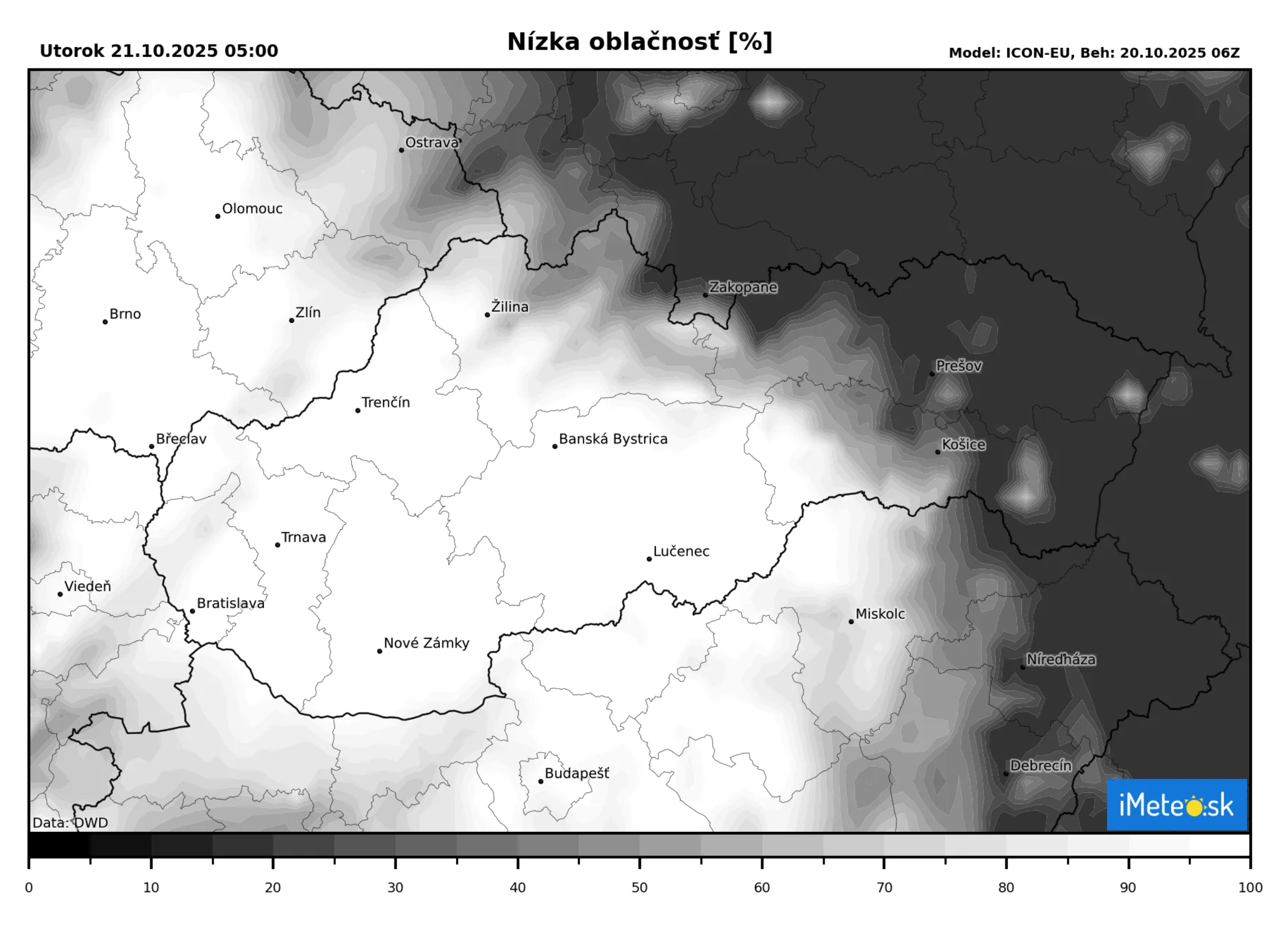 Oblačnosť a mrholenie prinesú už nočné a skoré ranné hodiny, rovnako ako mrazivé teploty do -3 °C a ranné hmly.