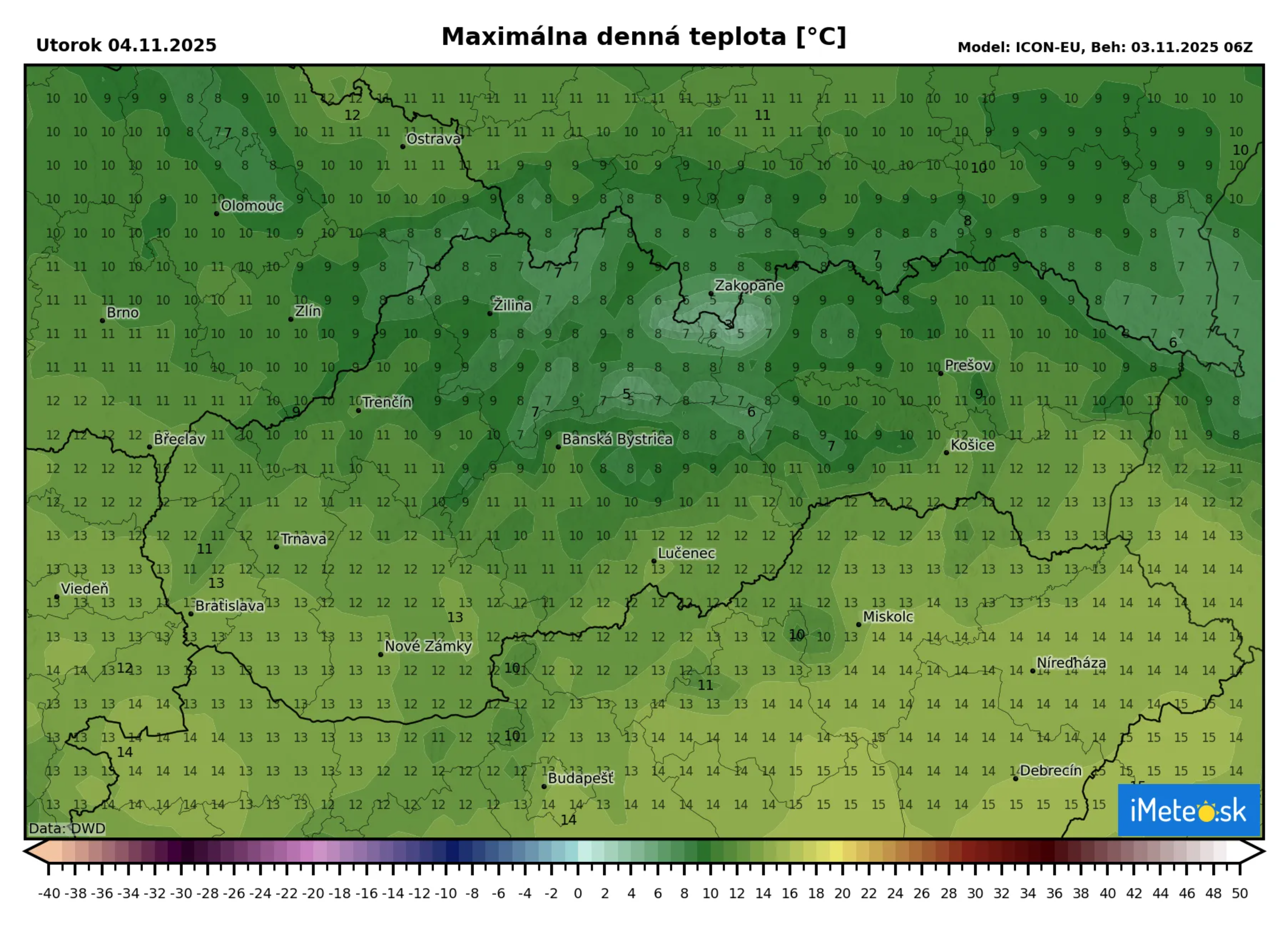 Najvyššia denná teplota vystúpi k +10 °C až +15 °C. Teplota na horách vo výške 1 500 m n. m. bude okolo +4 °C.