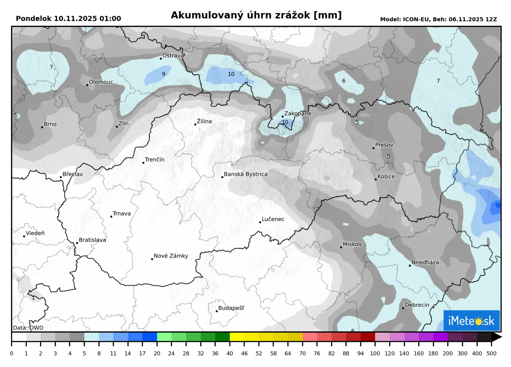 Aktuálna predpoveď numerického modelu ICON naznačuje, že najviac zrážok spadne na východnom Slovensku a na západnom Slovensku bude zrážok menej, ale iný model, napríklad Aladin, avizuje najviac zrážok práve v oblasti západného Slovenska.