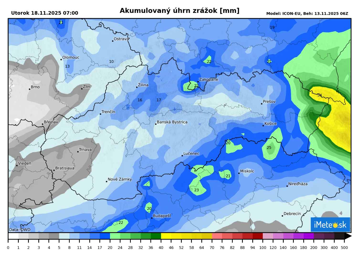 Nielenže aktuálne behy numerických modelov očakávajú pomerne výdatné zrážky, ale tie by v noci zo štvrtka na piatok mali prechádzať do snehových, a to už zhruba od nadmorskej výšky 300 až 400 metrov.