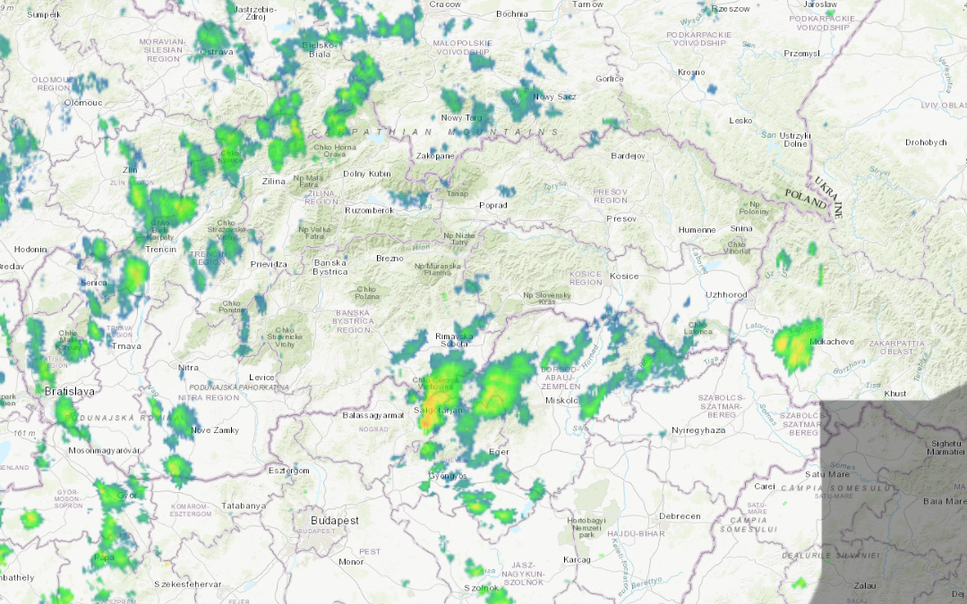 Na viacerých miestach na Slovensku sa vyskytujú prehánky, ktoré sú dažďové, snehové alebo zmiešané.