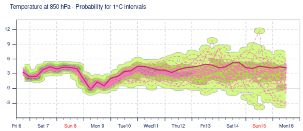 Dlhodobá vyhliadka naznačuje, že viac-menej až do polovice marca nás zrejme žiadne výrazné prekvapenie nečaká, čo naznačuje aj aktuálny ansámbel modelu ECMWF.