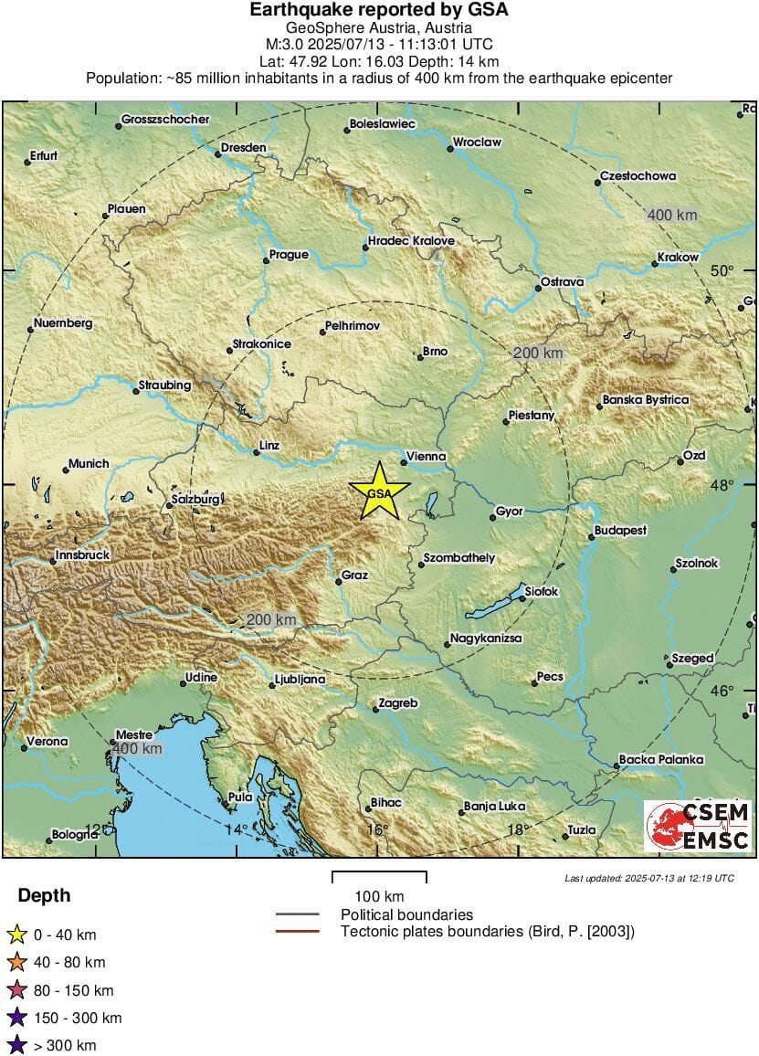 Dnes popoludní o 13:13 hod. bolo v oblasti Pernitz v Dolnom Rakúsku zaznamenané zemetrasenie s magnitúdou 3.0, ktoré bolo pocítené ľuďmi.