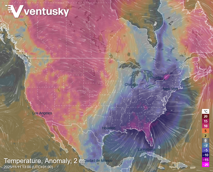 Na prvú polovicu novembra pôjde o nezvyčajne studenú vzduchovú hmotu, ktorá sa najmä na juhovýchode USA postará možno aj o prepisovanie teplotných rekordov, informuje český meteorológ Michal Žák.