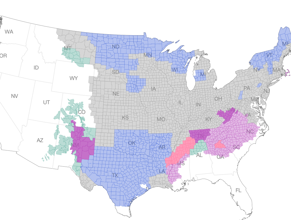 V severnejších oblastiach sa očakávajú desiatky centimetrov snehu, zatiaľ čo v prechodových pásmach bude hlavným rizikom poľadovica. Tá môže spôsobiť pády stromov, poškodenie elektrického vedenia a rozsiahle výpadky prúdu.