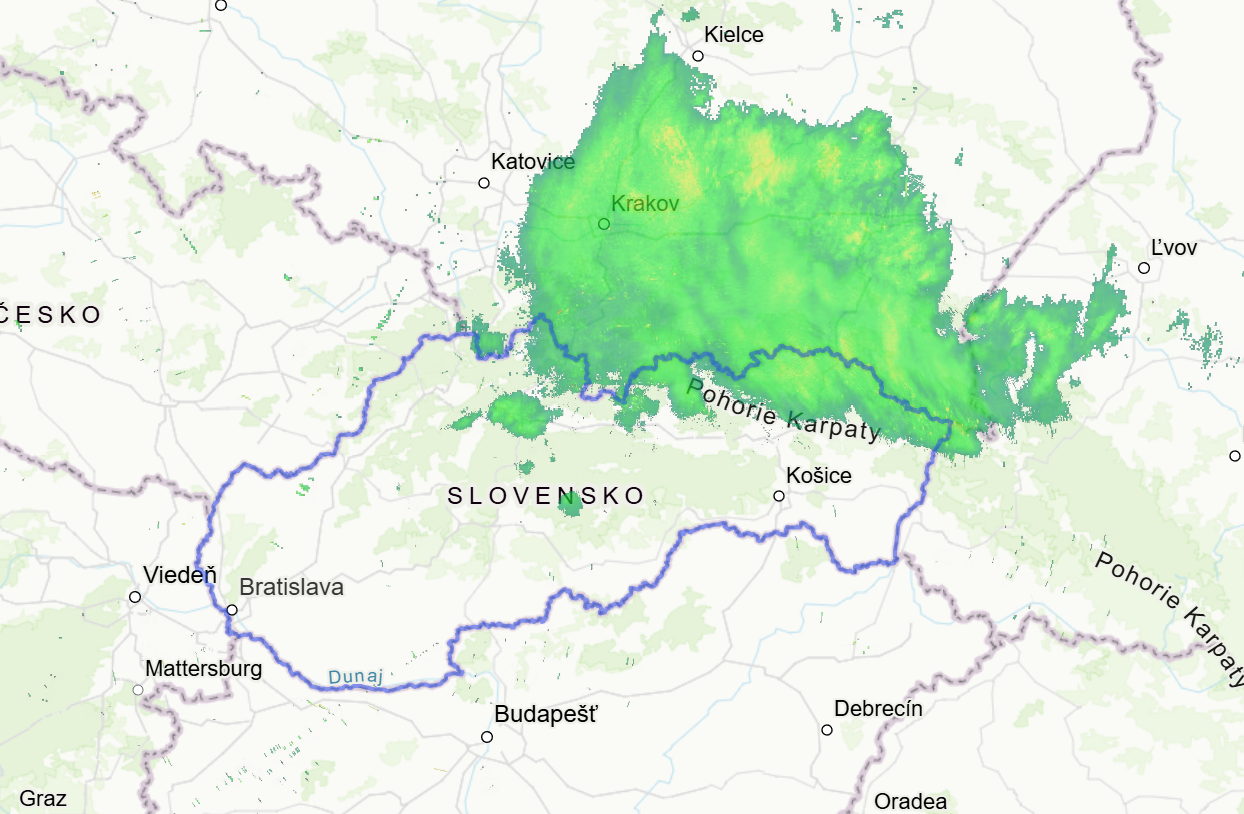 Prvé zrážky evidujeme na krajnom severe Prešovského kraja a v nadchádzajúcich hodinách by sa zrážková činnosť mala rozšíriť nad viaceré oblasti Prešovského kraja a čiastočne aj do východných okresov Žilinského kraja. Inde však dážď neočakávajte.