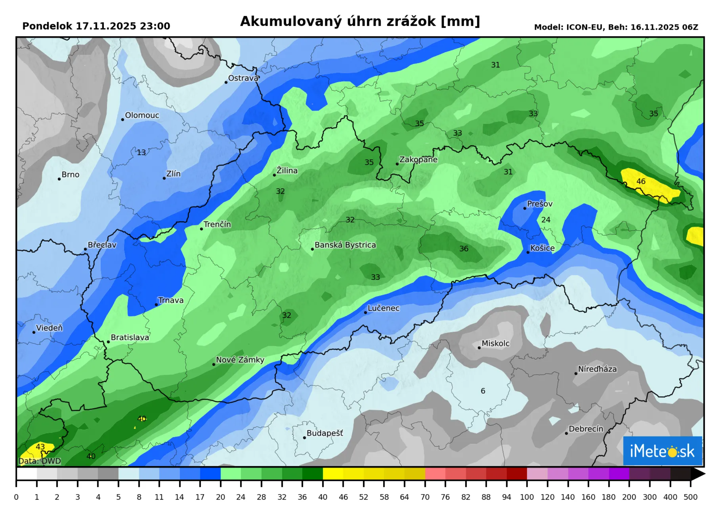 Kým v noci a zajtra ráno budú zrážky ešte pomerne slabé, popoludní začnú naberať na intenzite s úhrnom do 40 mm. Zároveň sa za frontom aj výrazne ochladí a teploty pôjdu zajtra v popoludňajších a večerných hodinách už prudko nadol.