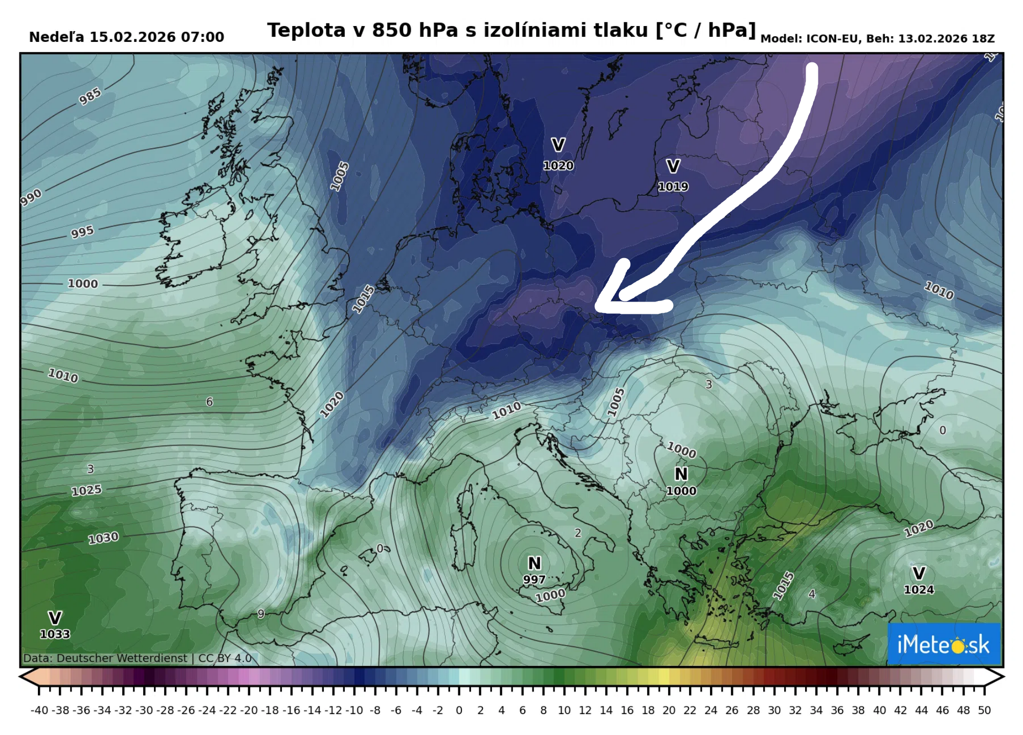V nasledujúcich hodinách čaká Slovensko prudká a náhla zmena počasia, za ktorú môže prepad veľmi chladného, pôvodom arktického vzduchu od severu. Ako si môžete všimnúť na mape, studený vzduch sa k nám dostane po zadnej strane rozsiahlej oblasti tlakových níží, pričom jedna sa nachádza nad Sicíliou, druhá nad Rumunskom a tretia nad Ruskom.