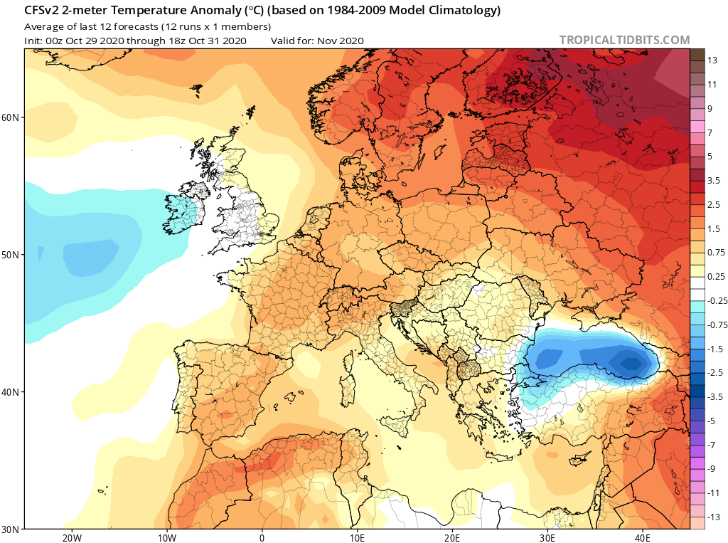 November by mal byť teplotne normálny až nadnormálny, než je dlhodobý priemer. Vychádza to aj z dlhodobej predpovede na základe odchýlok teploty vzduchu pre naše územie.