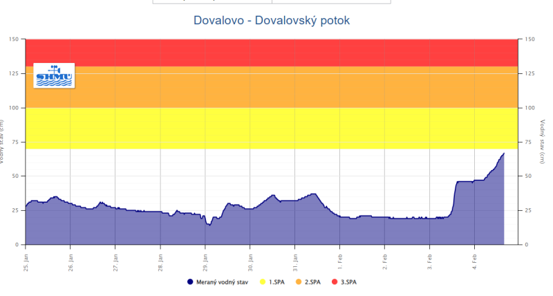 Na našom území začínajú rásť vodné toky k úrovni 1. povodňového stupňa. 1. SPA bude už čoskoro prekročený na Dovalovskom potoku, pri Liptovskom Hrádku, či na Bielom Váhu.