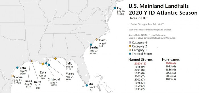 Eta bola zároveň prvou búrkou, ktorá udrela na Floridu, za posledných 22 rokov. Posledným systémom, ktorý dosiahol Floridu, bol Mitch v roku 1998.