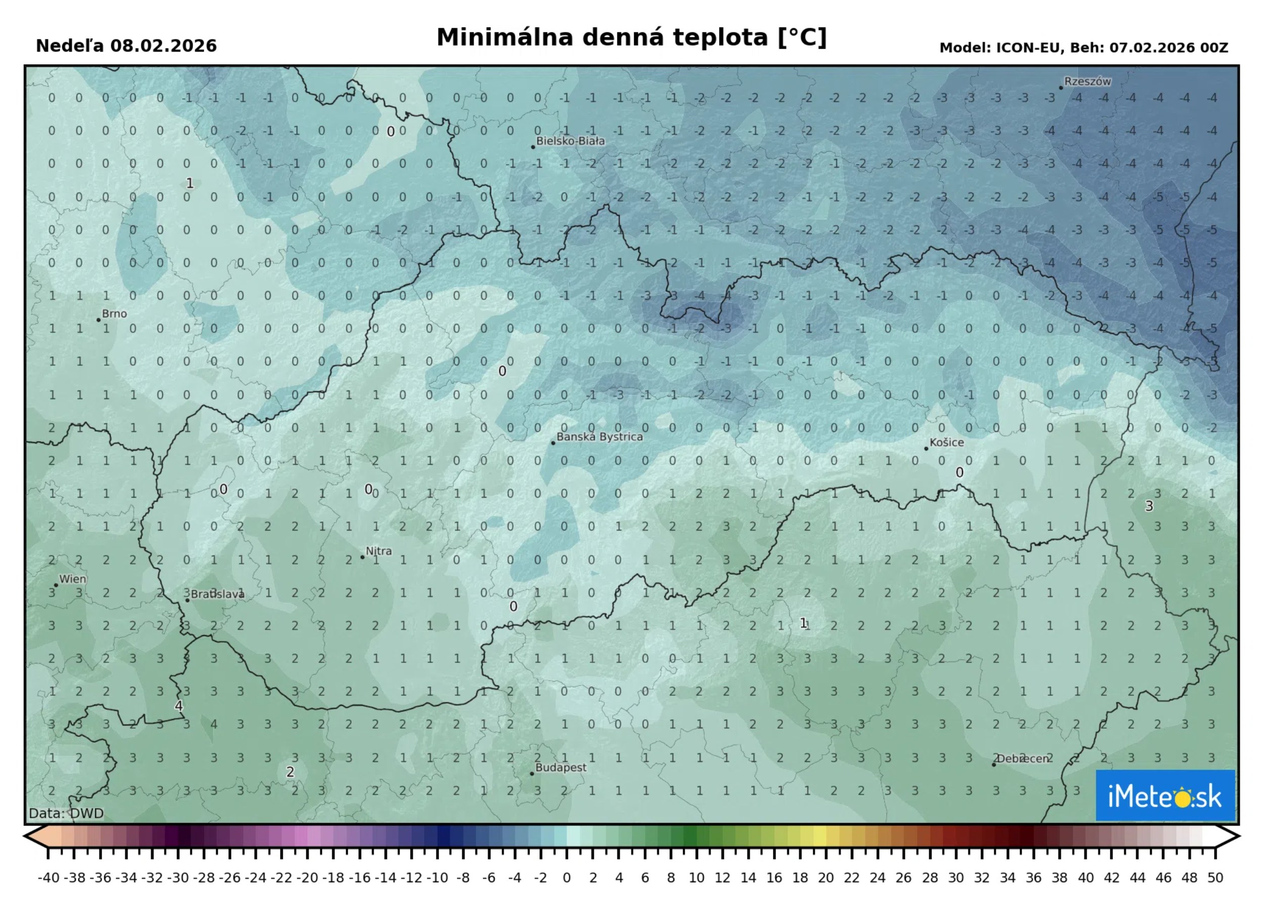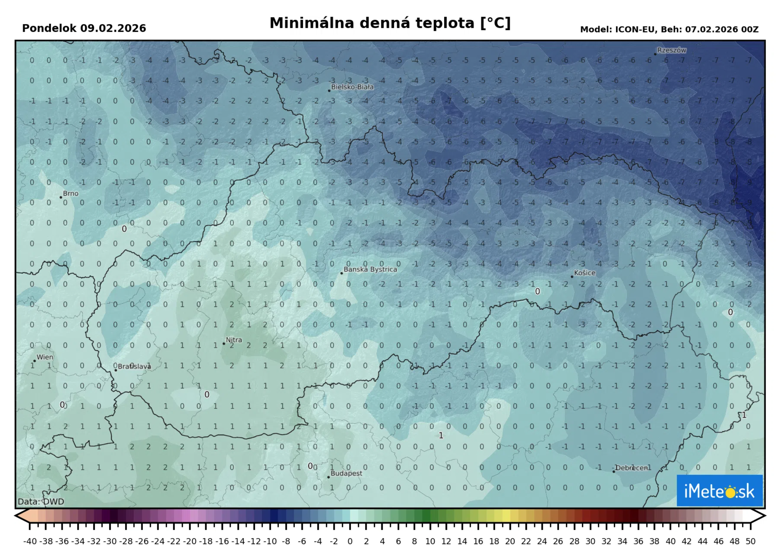 Už počas noci zo soboty na nedeľu sa vrátia mínusové teploty – tie budú klesať k +4 až -1 °C, zatiaľ čo v noci z nedele na pondelok najnižšia nočná teplota klesne k +2 až -3 °C, na Orave, v Prešovskom kraji a dolnom Spiši dokonca k -3 až -7 °C.