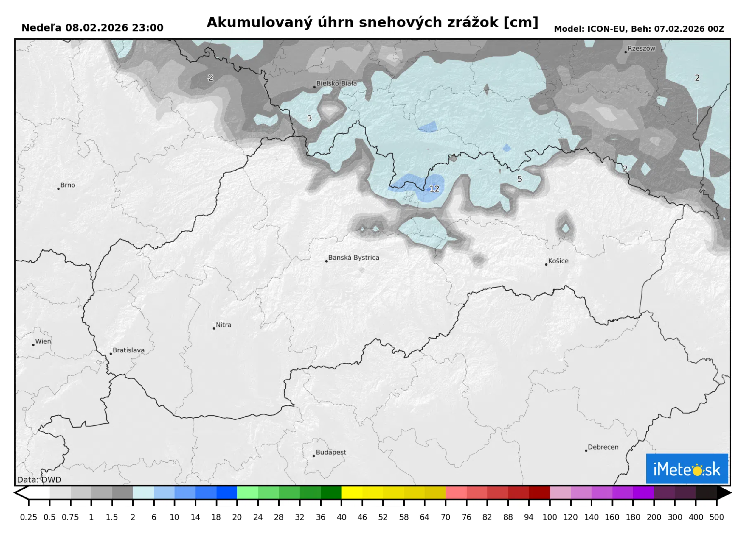 Ochladenie zároveň prinesie aj zmenu zrážok z dažďa na sneženie od stredných polôh, k večeru na severovýchode sneženie aj v nižších polohách.