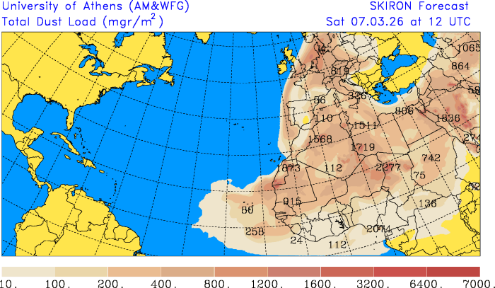 Podobná situácia sa čoskoro prenesie aj nad Slovensko. Podľa predpovedného modelu SKIRON sa už v najbližších dňoch nad naše územie opäť dostane vyššia koncentrácia saharského prachu, ktorý atmosféru poznačí typickým mliečnym až žltkastým nádychom.