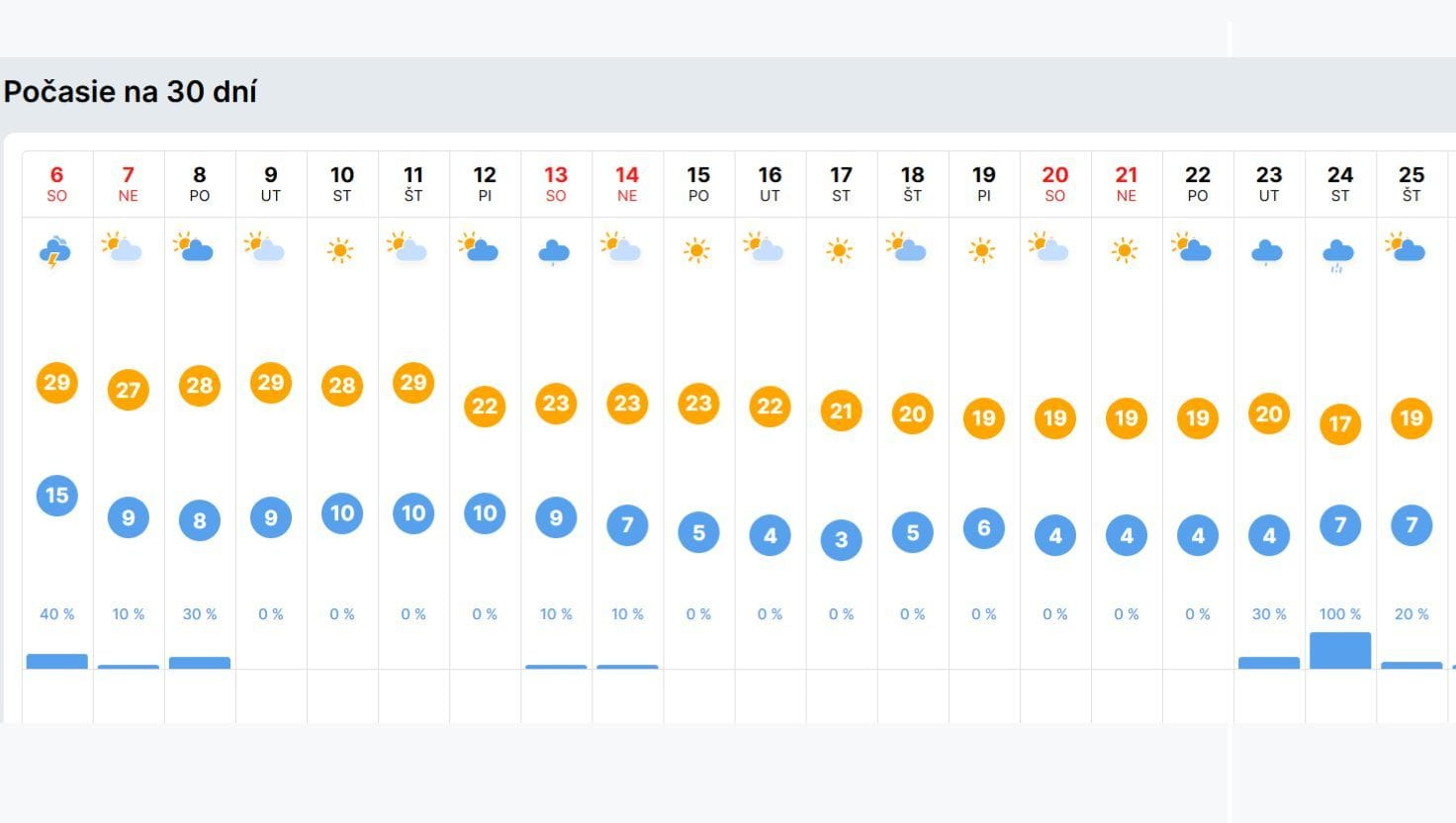 Napriek víkendovému ochladeniu, ktoré na naše územie priniesol studený front, bude najbližších 6 dní stále veľmi teplo.