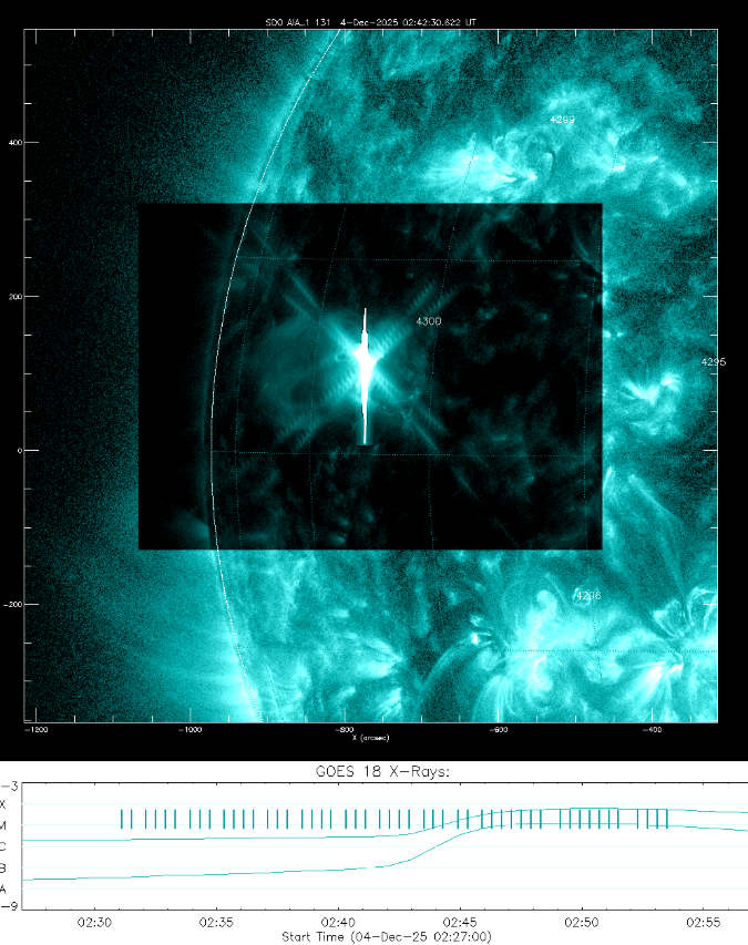Slnko sa opäť pripomína. V skorých hodinách dnes, 4. decembra, o 03:50 (nášho času) aktívna oblasť AR4300 náhle vyvolala slnečný výbuch triedy M6. Ide o jednu z najsilnejších zaznamenaných erupcíí za posledné týždne.