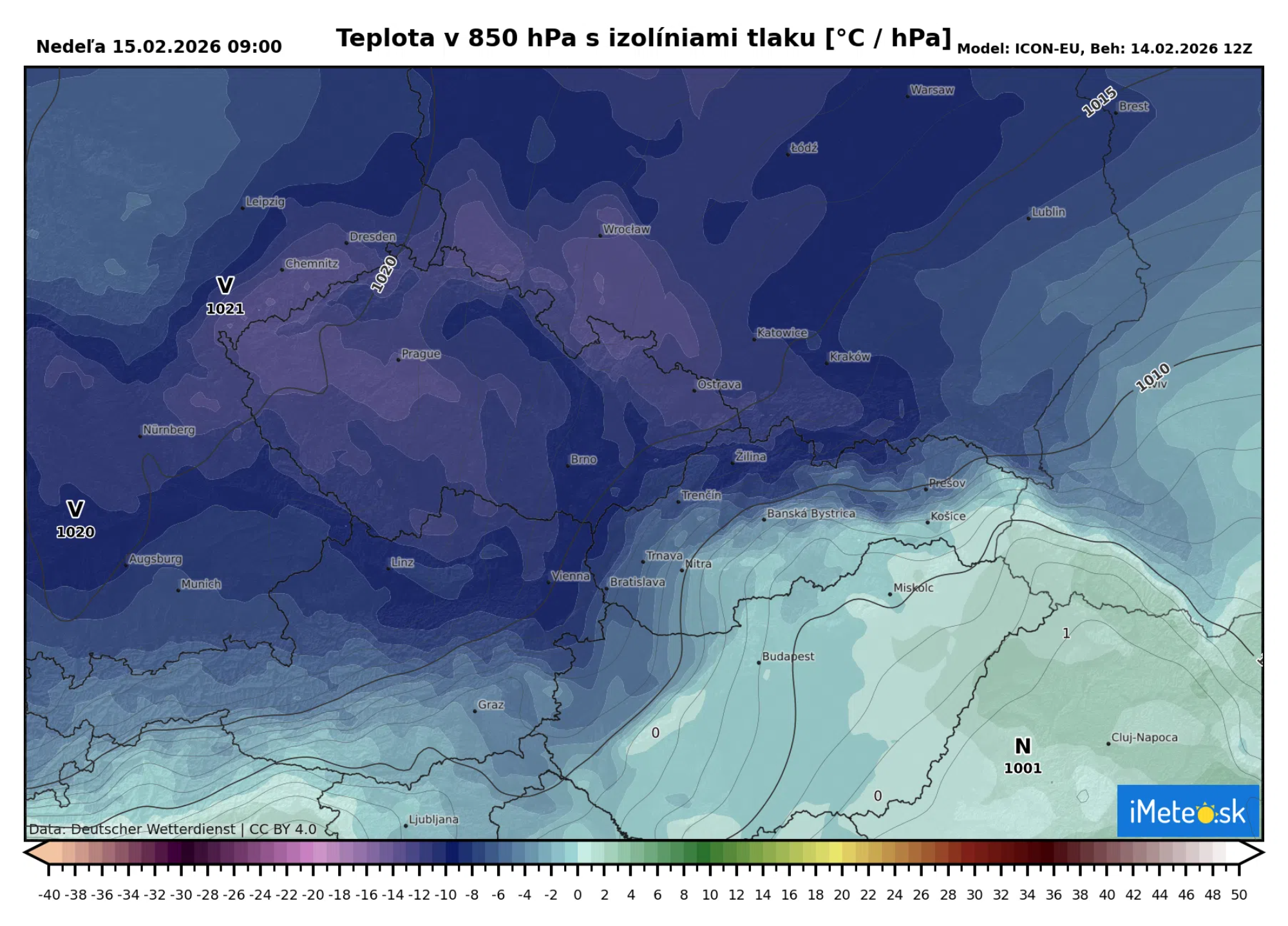 Na mape si môžete všimnúť, že tento tlakový gradient bude na Slovensku výrazný. Zatiaľ čo juhovýchodne od Slovenska sa bude nachádzať tlaková níž, od severozápadu sa bude tlačiť tlaková výš.