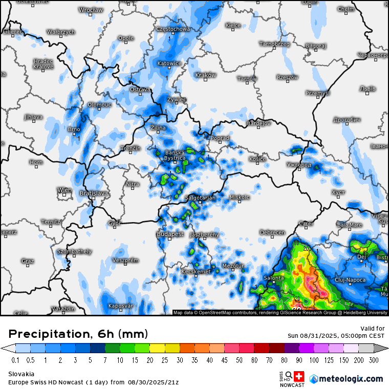 V týchto chvíľach sa ešte stále vyskytujú zrážky v oblasti západného Slovenska a ustať by mali až okolo poludnia. Bez zrážok však naše územie nezostane. Nad Maďarskom sa aj naďalej vypĺňa tlaková níž okolo ktorej sa točí zrážkové pole a dnes popoludní bude dochádzať k ďalšiemu vzniku prehánok a búrok.
