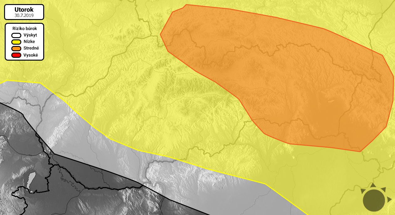 Po 15:00 sa očakáva iniciácia búrok aj v oblasti severozápadného a stredného Slovenska. Tu by mali búrky pretrvávať najdlhšie a to až do večerných hodín.